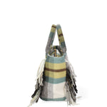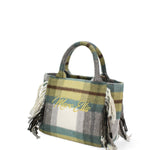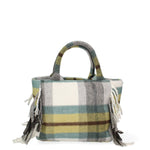 Borsa a mano da donna. La chiusura è con zip. Le tasche interne sono una con zip e due aperte. Le tasche esterne sono assenti. La tracolla è regolabile e rimovibile in tessuto. Il manico è lana.