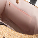 Realizzata con fibre naturali intrecciate, questa borsa celebra la bellezza della semplicità e l'abilità della lavorazione artigianale. L'interno, rivestito in paglia intrecciata, conferisce un tocco unico e distintivo, mentre la chiusura magnetica assicura praticità e sicurezza.
