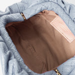 Realizzata interamente in vera pelle di alta qualità, sia all'esterno che all'interno, questa borsa incarna lusso e durata. La texture delicatamente trapuntata conferisce un tocco di sofisticatezza discreta, mentre la chiusura a scatto garantisce praticità e sicurezza.