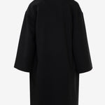Il taglio ampio e la linea pulita esaltano la silhouette, mentre l'assenza di chiusura aggiunge un tocco di rilassata raffinatezza. Il tessuto interno, composto da poliestere ed elastan, garantisce comfort e libertà di movimento.