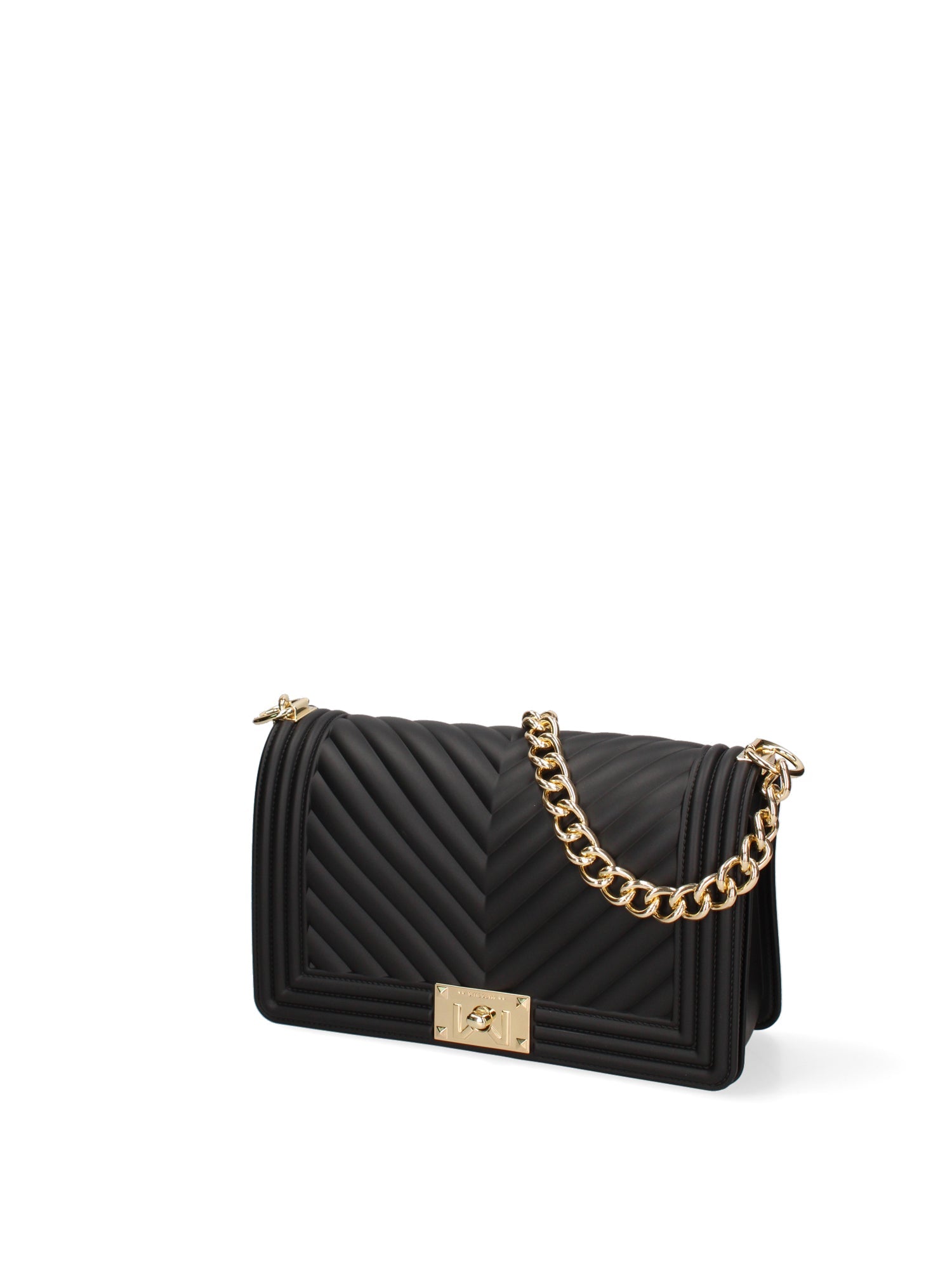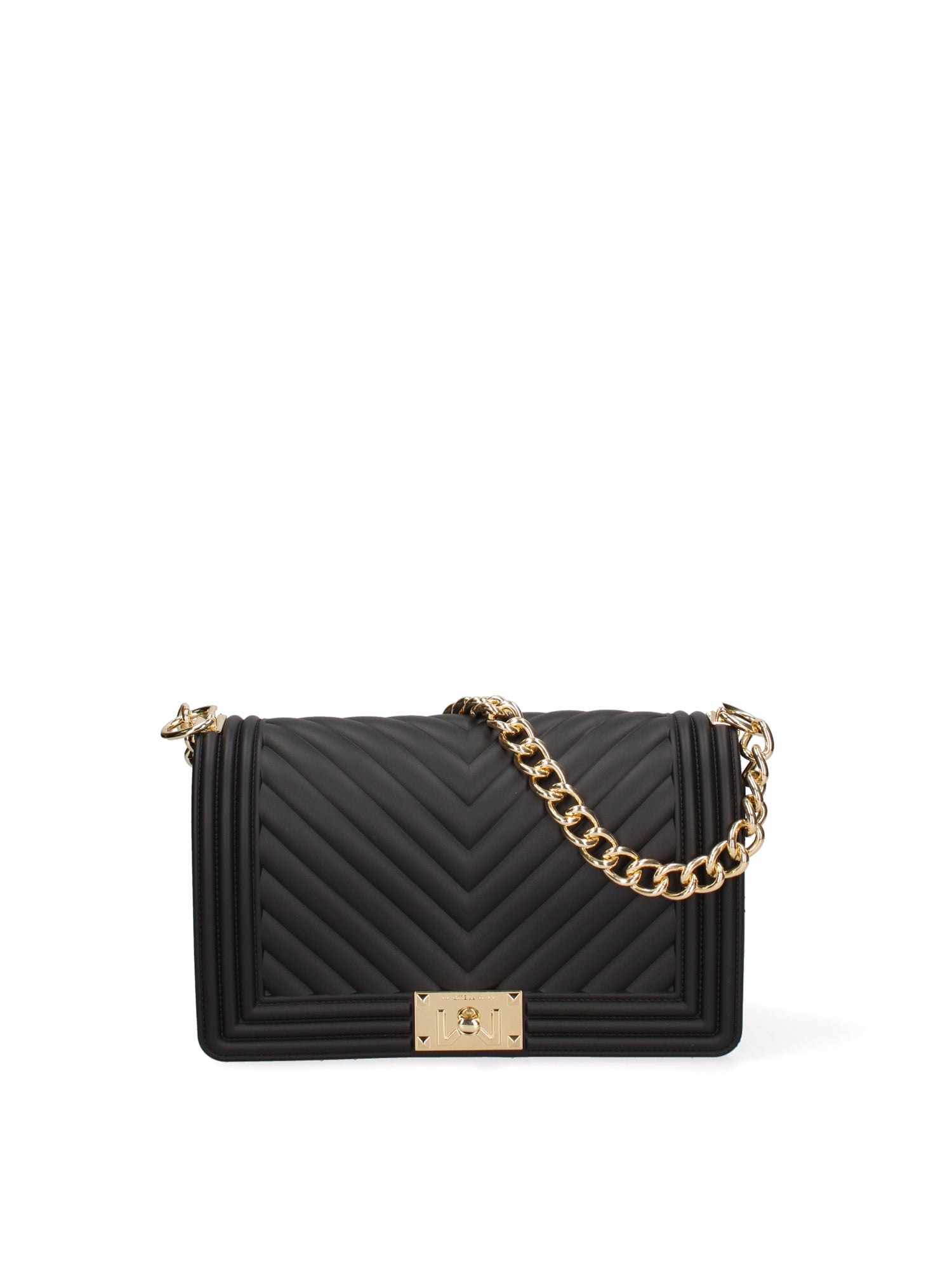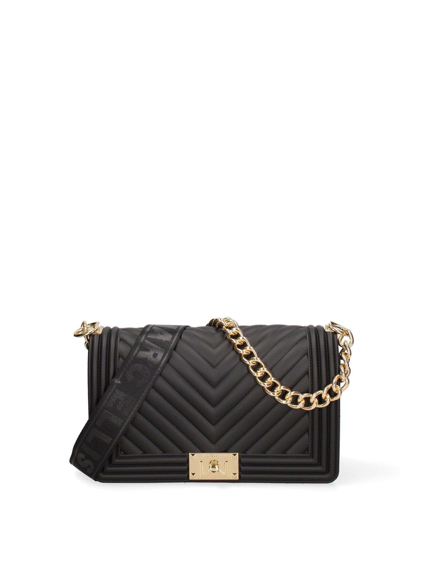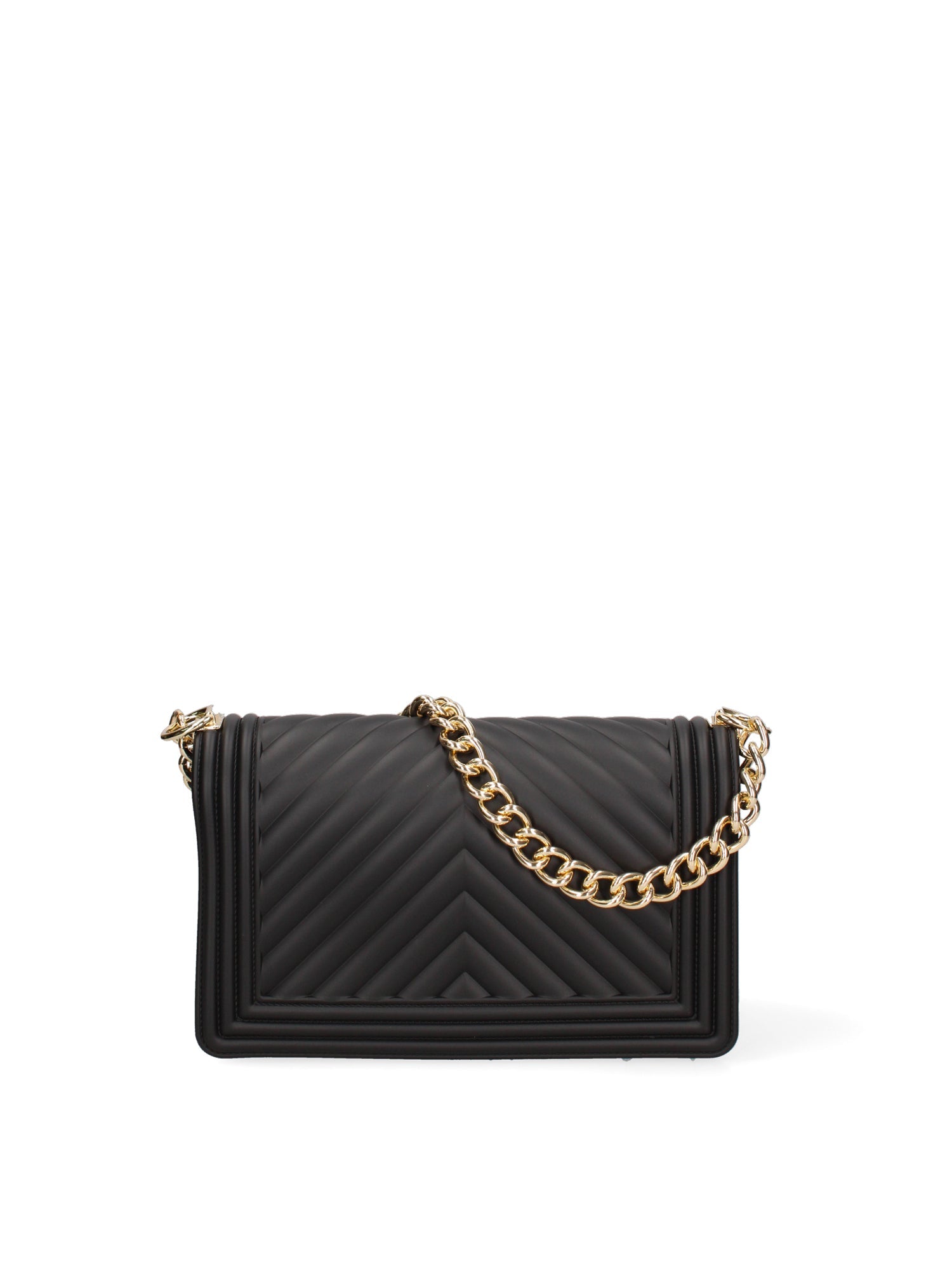 Borsa a mano da donna. La chiusura è con girello. Le tasche interne sono assenti. Le tasche esterne sono assenti. La tracolla è regolabile e rimovibile in tessuto. Il manico è catena. Gli scomparti interni sono uno.