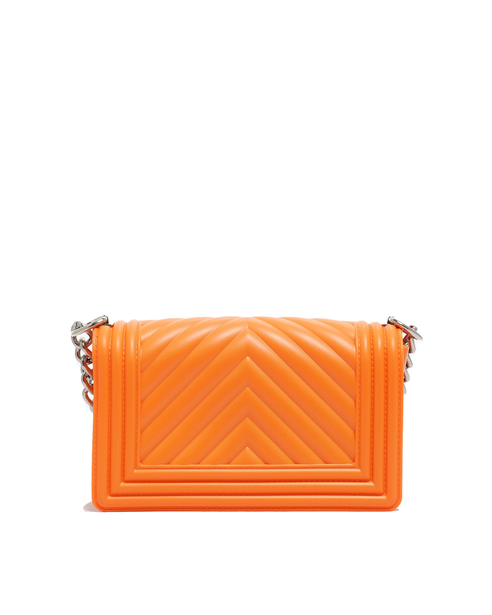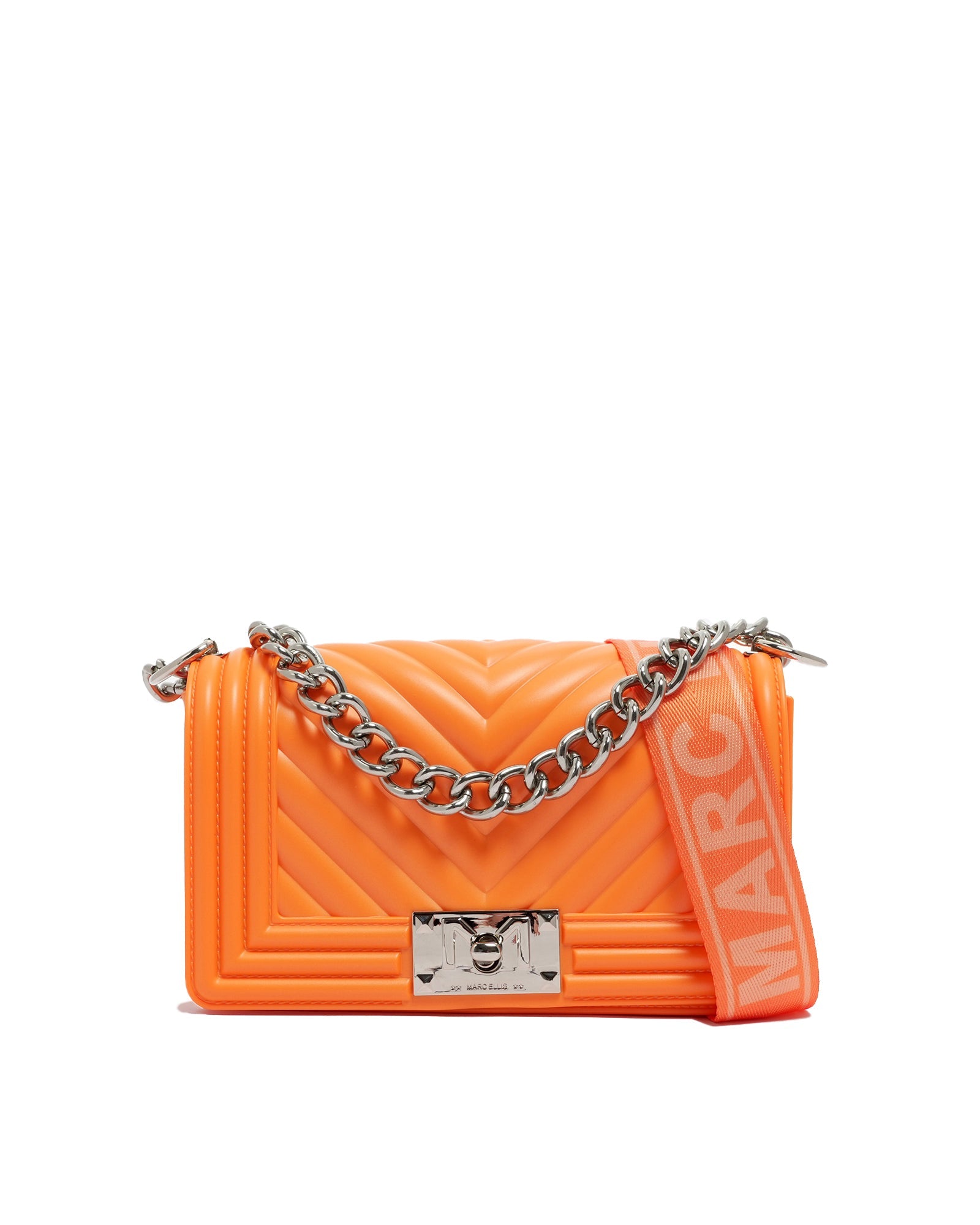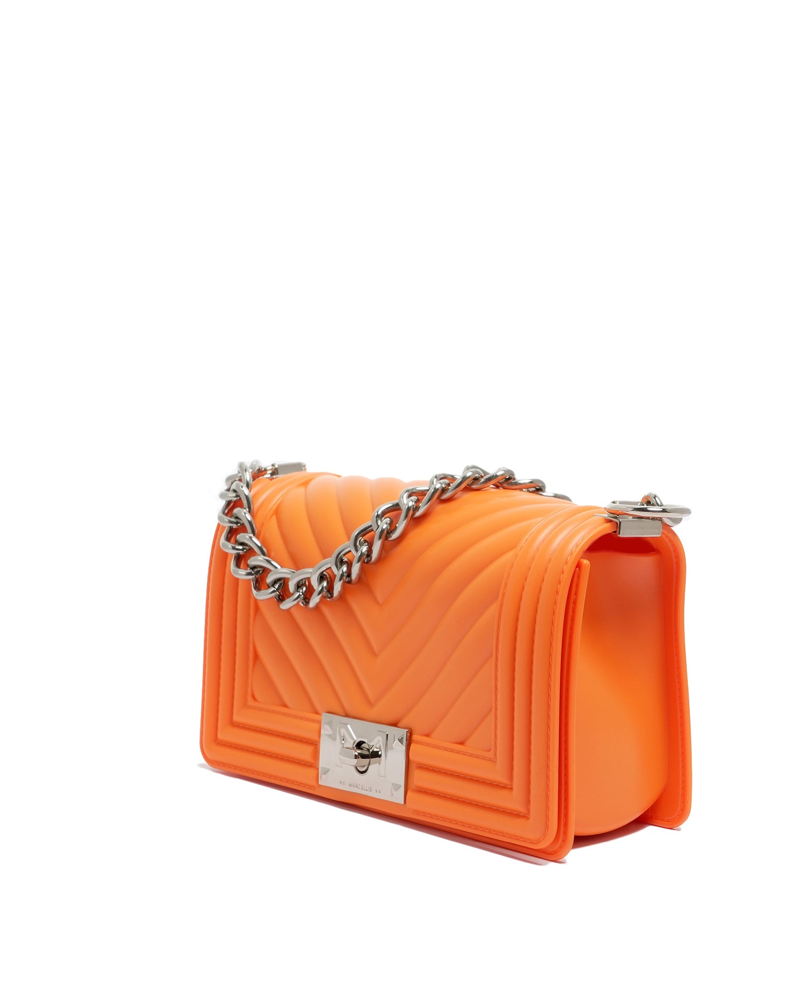 Borsa a mano da donna. La chiusura è con girello. Le tasche interne sono una aperta. Le tasche esterne sono assenti. La tracolla è regolabile e rimovibile in tessuto. Il manico è catena. Gli scomparti interni sono uno.