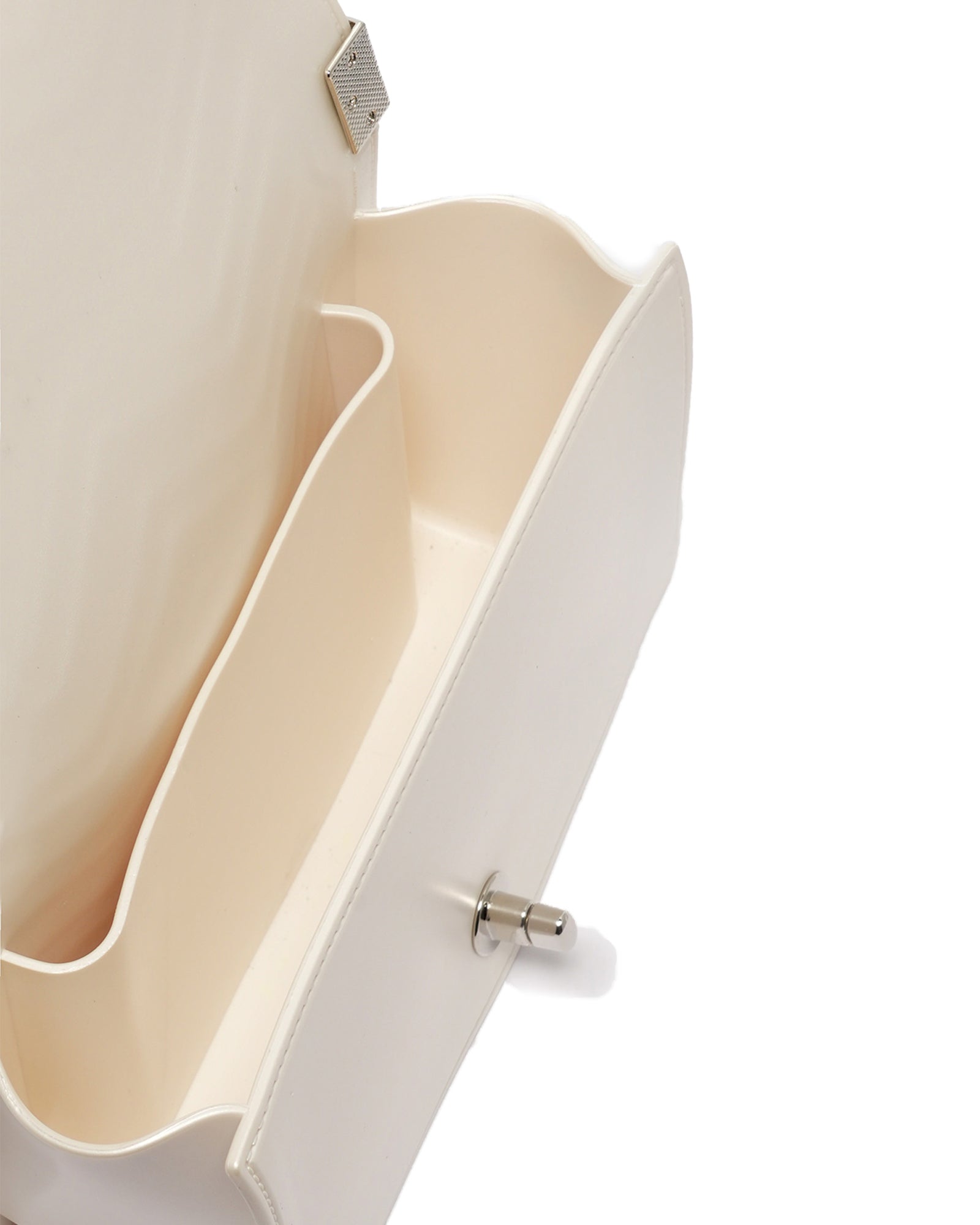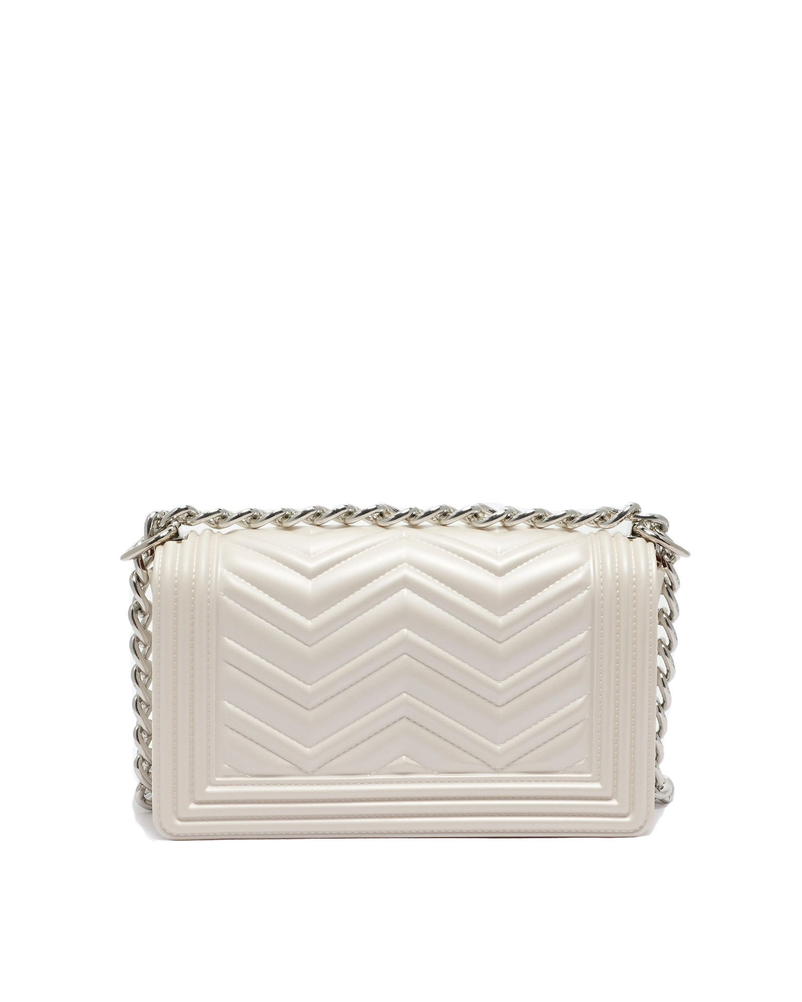 Borsa a mano da donna. La chiusura è con girello. Le tasche interne sono assenti. Le tasche esterne sono assenti. La tracolla è catena. Il manico è assente. Gli scomparti interni sono uno. Il materiale esterno è PVC.