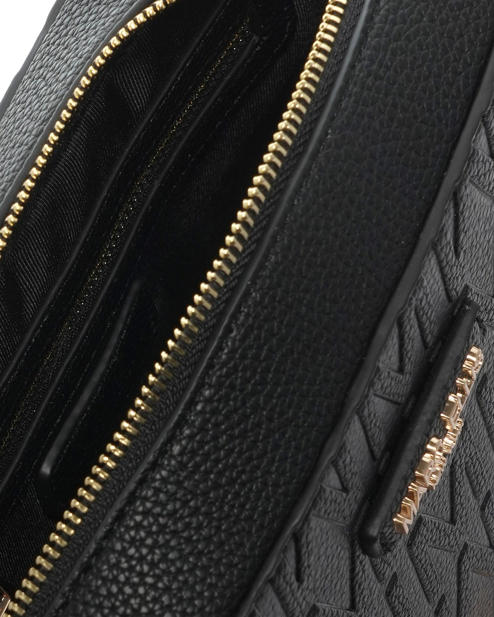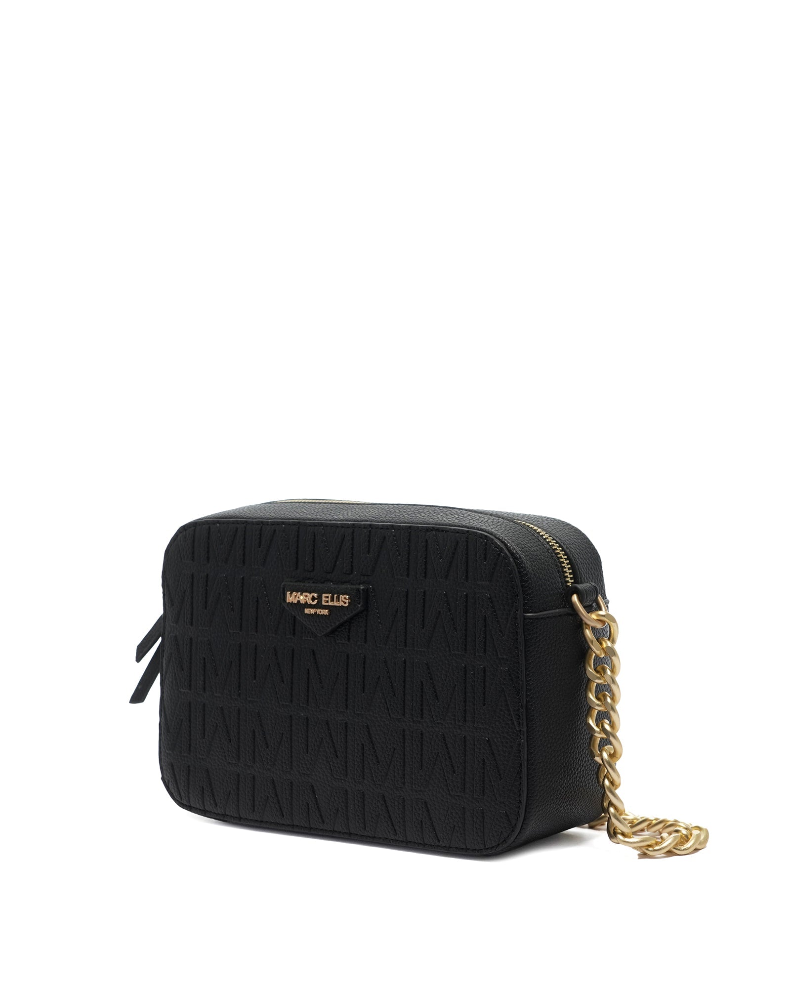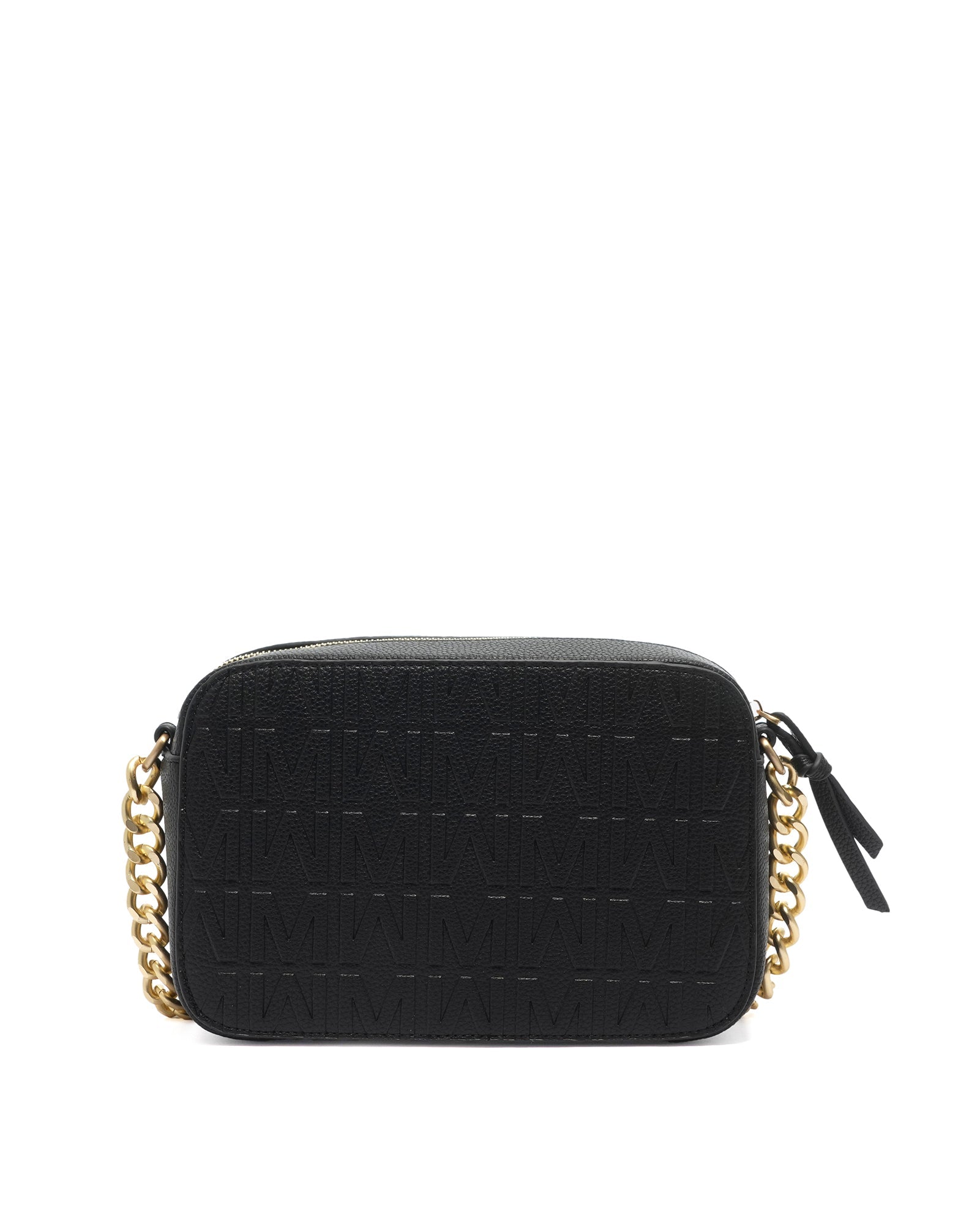 Borsa a spalla da donna. La chiusura è con zip. Le tasche interne sono una con zip e una aperta. Le tasche esterne sono assenti. La tracolla è regolabile in catena e pvc. Il manico è assente.