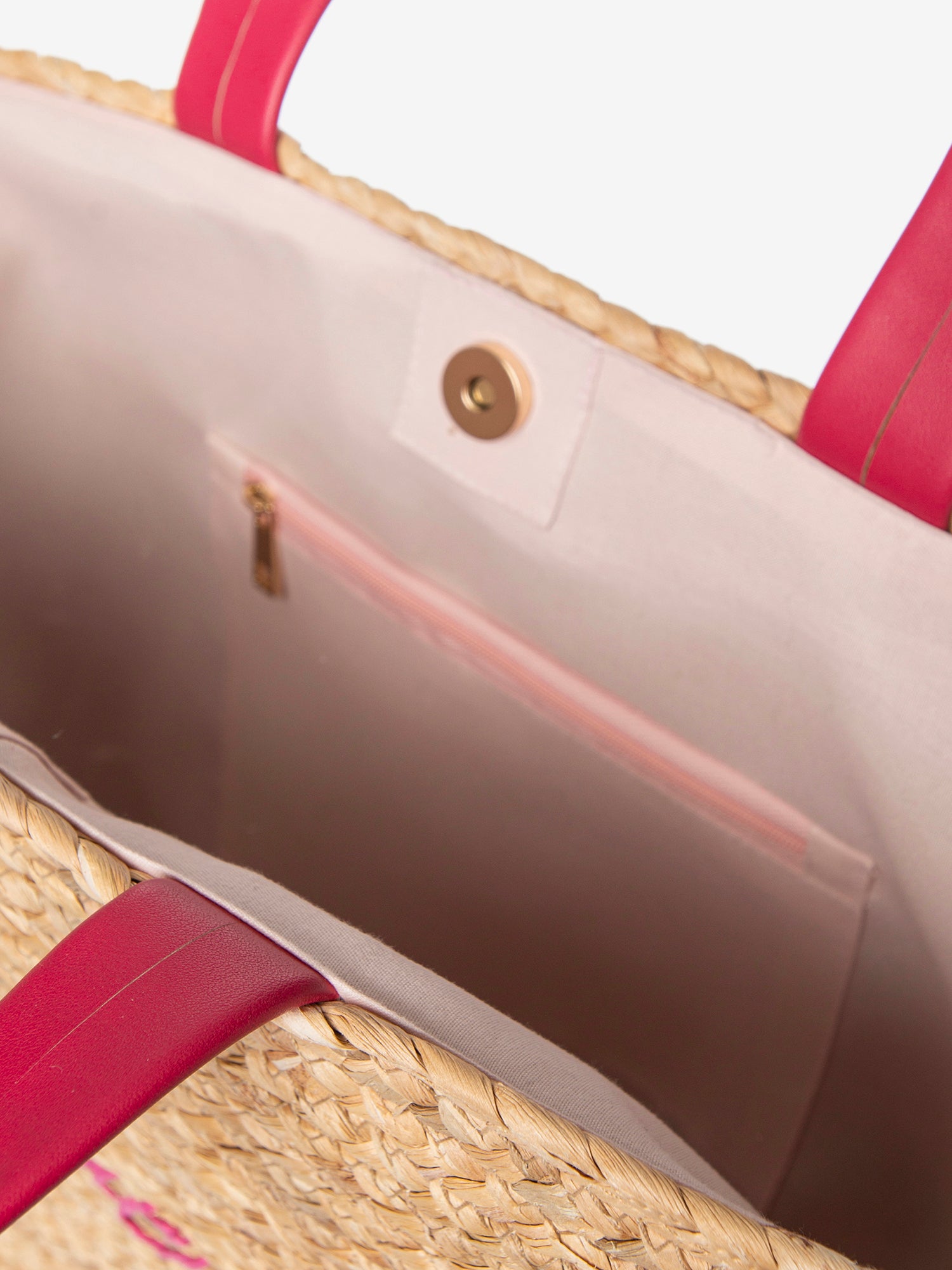I manici, dal colore vibrante e accattivante, offrono una presa confortevole e aggiungono un tocco di colore che ravviva l'intero design. Ideale per un look casual ma curato, questa borsa è perfetta per la vita di tutti i giorni, per una giornata in città o per un picnic all'aria aperta.