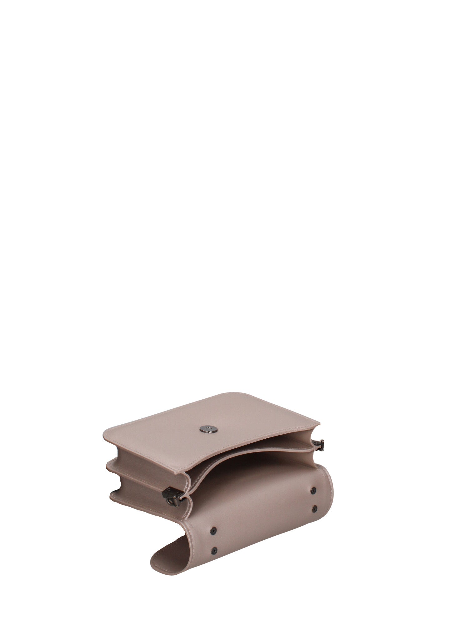 Borsa a mano da donna. La chiusura è con bottone magnetico. Le tasche interne sono assenti. Le tasche esterne sono assenti. La tracolla è regolabile e rimovibile in tessuto. Il manico è gomma. Gli scomparti interni sono due. Il materiale esterno è 100% Gomma. Internamente è 100 % Gomma. Misure: 15x19x7 cm . Prodotto Fashion