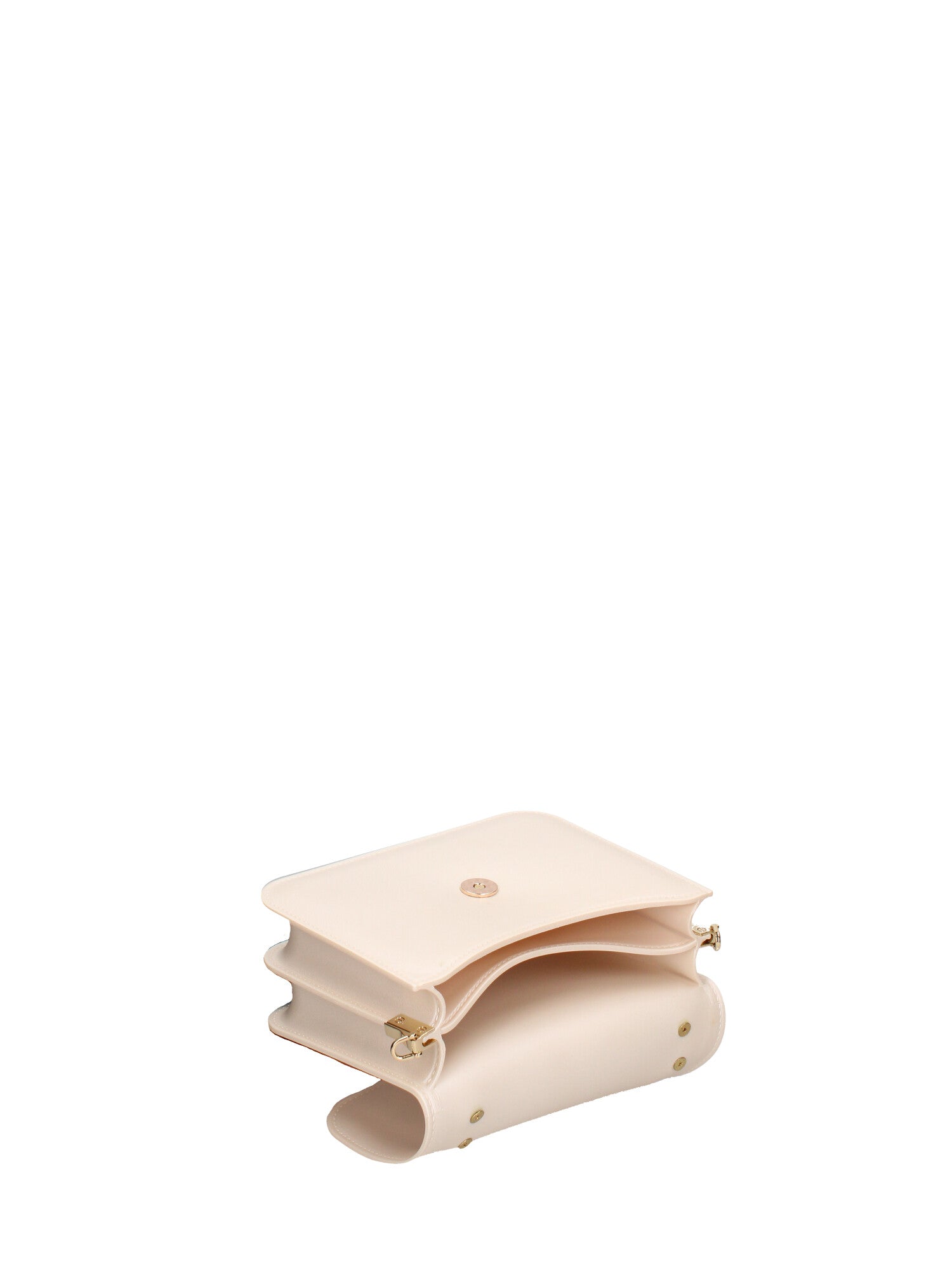 Borsa a mano da donna. La chiusura è con bottone magnetico. Le tasche interne sono assenti. Le tasche esterne sono assenti. La tracolla è regolabile e rimovibile in tessuto. Il manico è gomma. Gli scomparti interni sono due. Il materiale esterno è 100% Gomma. Internamente è 100 % Gomma. Misure: 15x19x7 cm . Prodotto Fashion