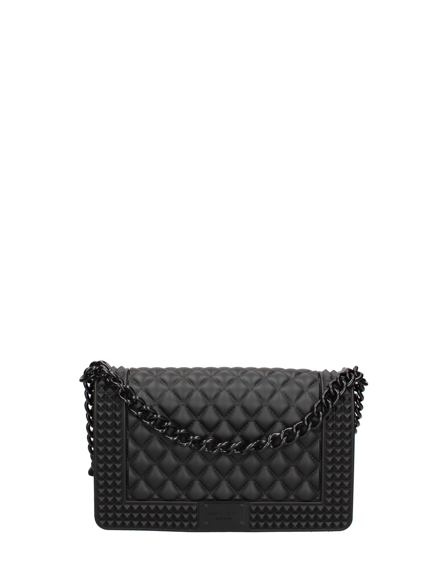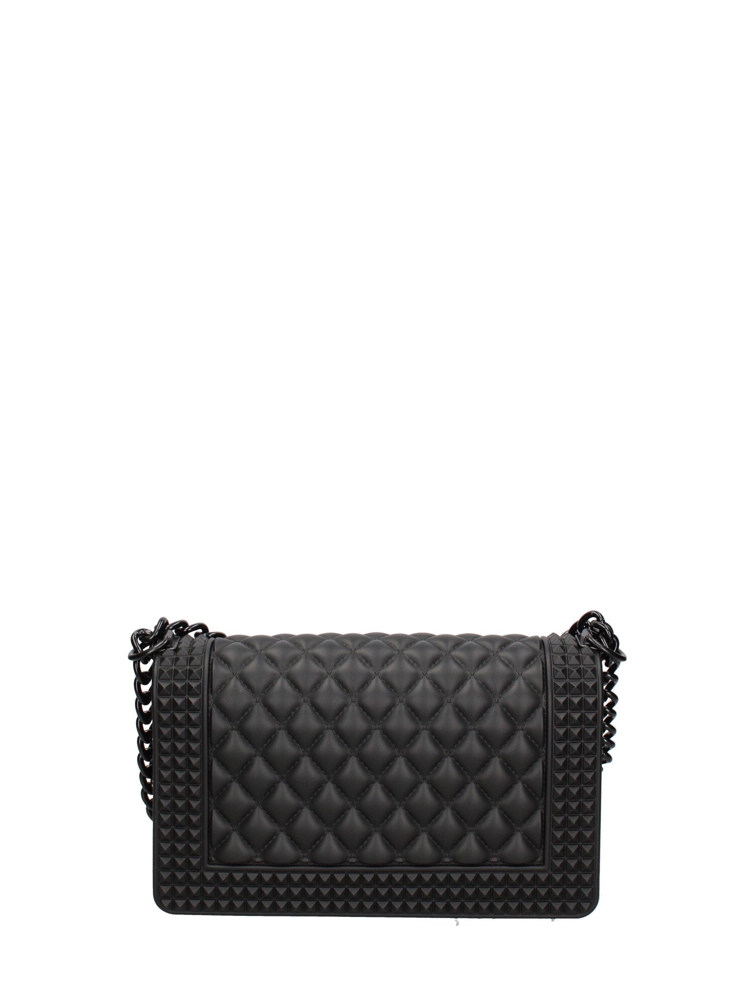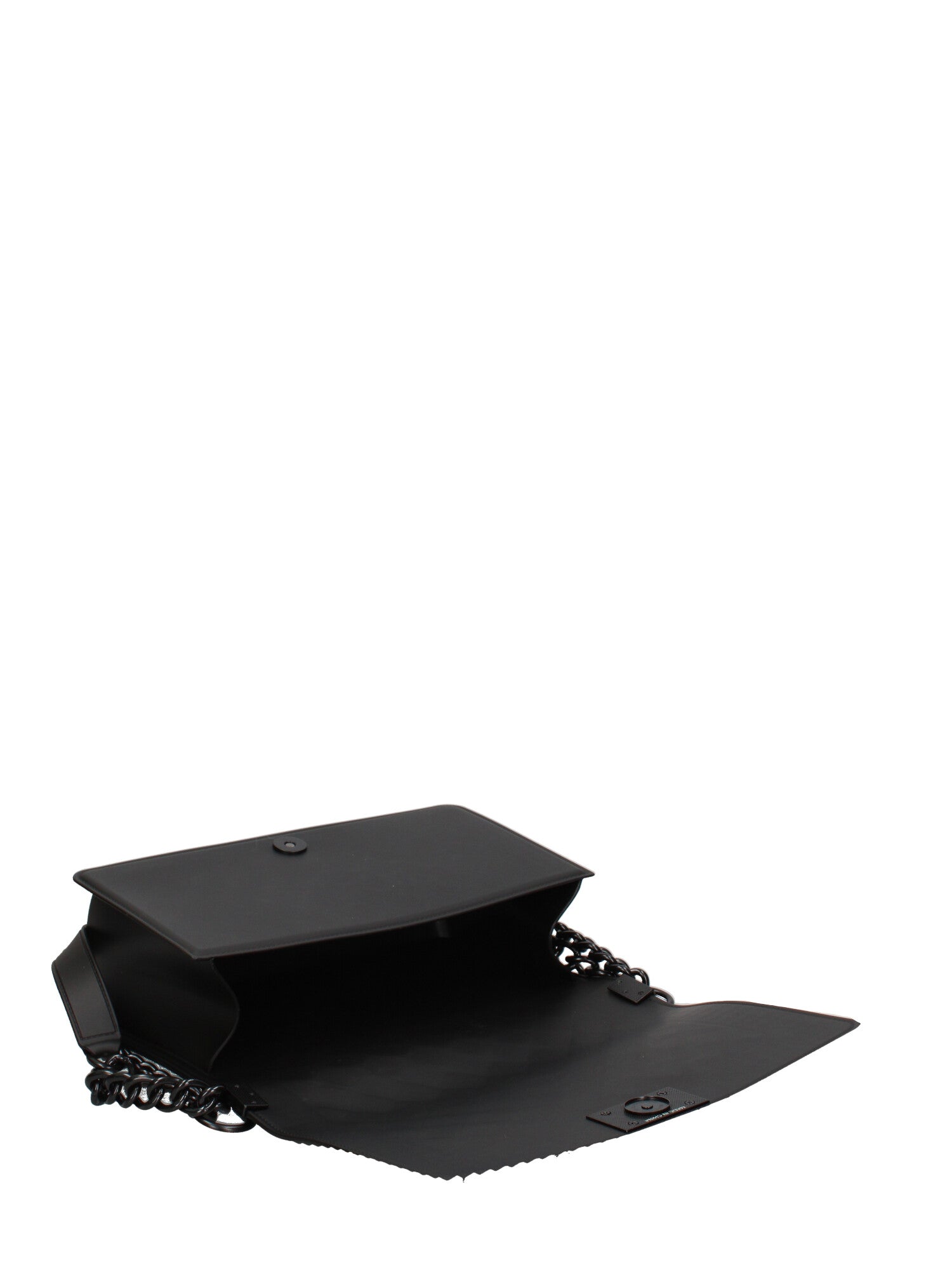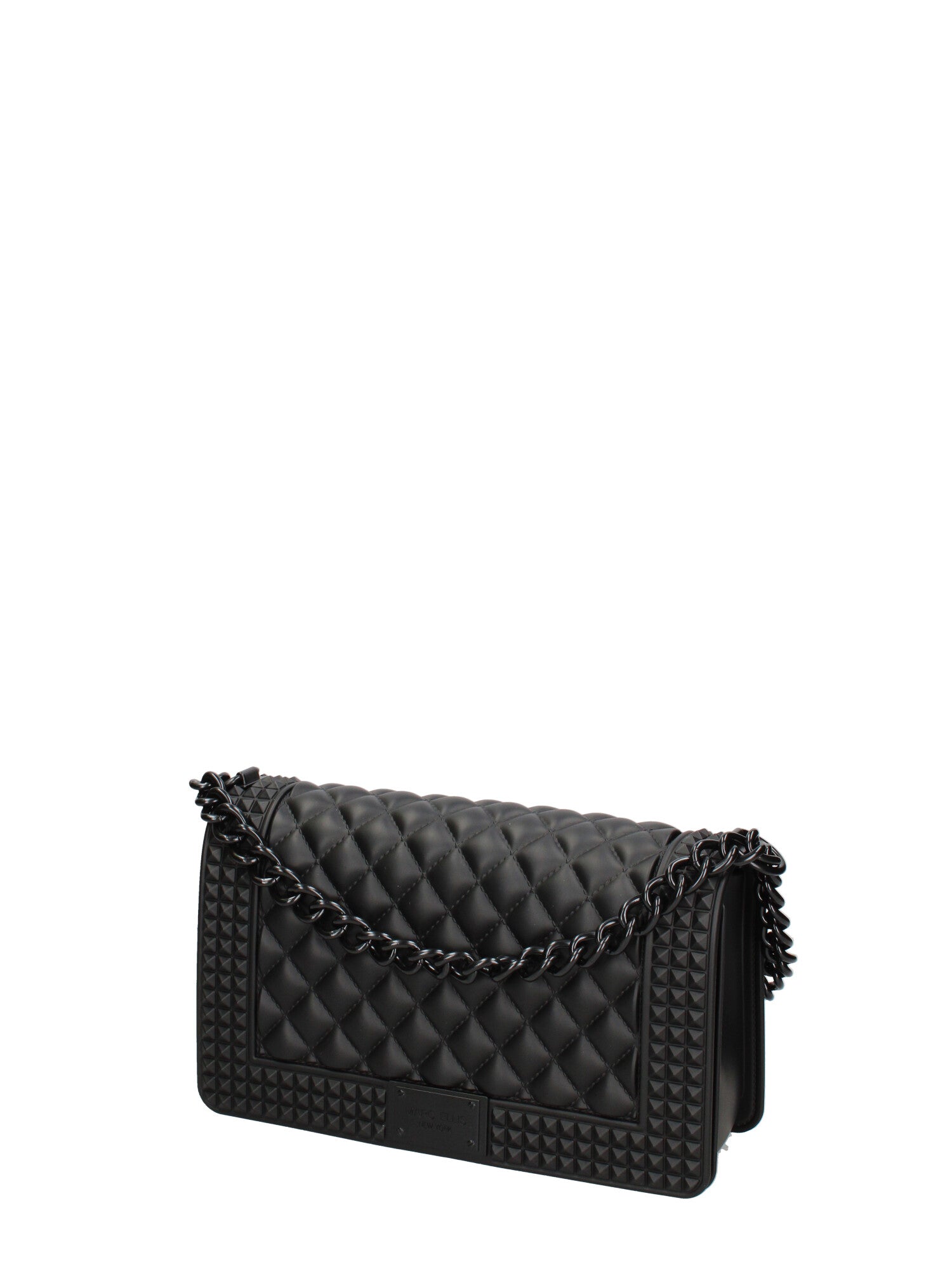 Borsa a mano da donna. La chiusura è con girello. Le tasche interne sono assenti. Le tasche esterne sono assenti. La tracolla è regolabile e rimovibile. Il manico è catena. Gli scomparti interni sono uno. Il materiale esterno è 100% Gomma. Internamente è 100 % Gomma. Misure: 15x25x8 cm . Prodotto Fashion