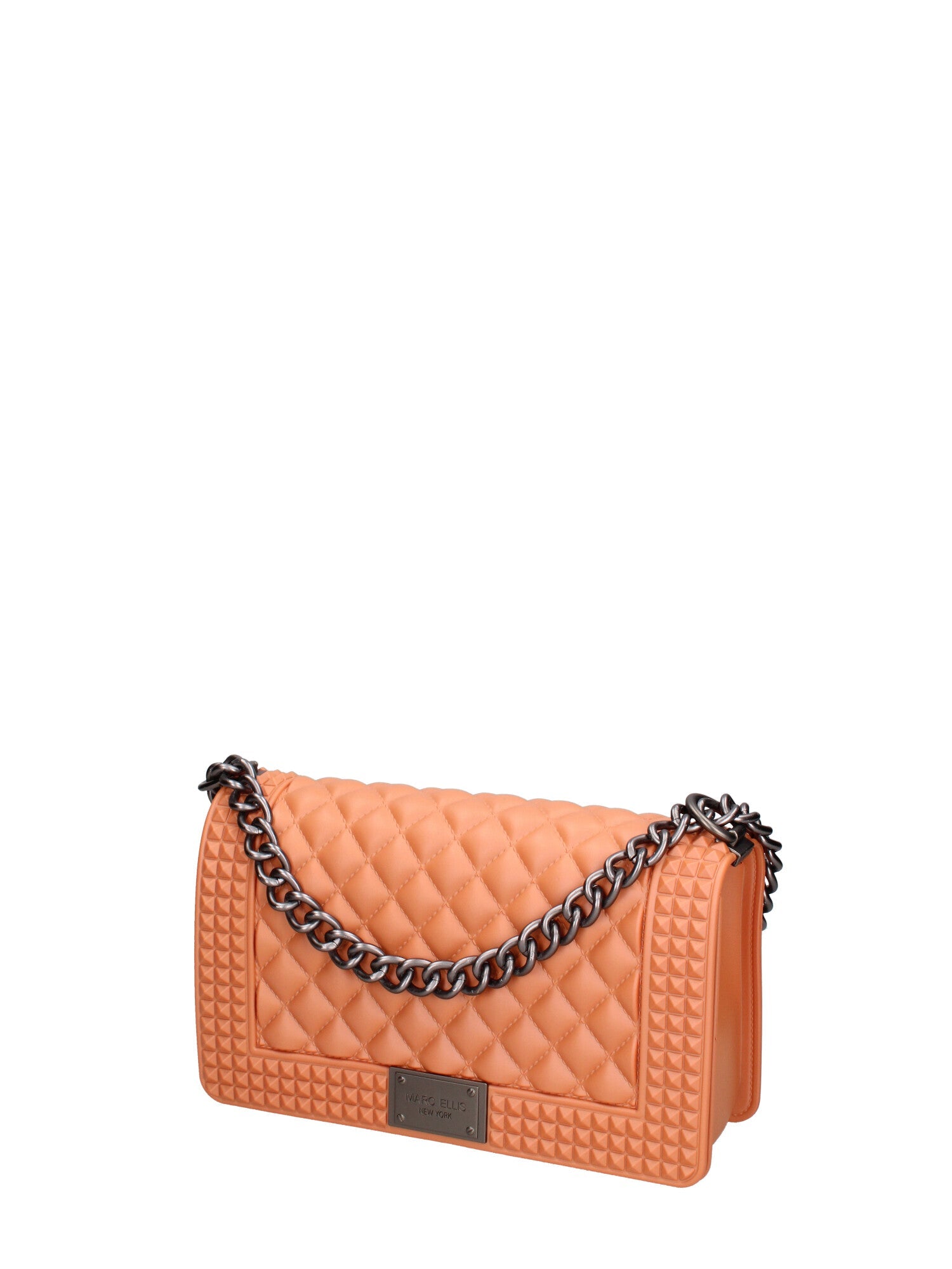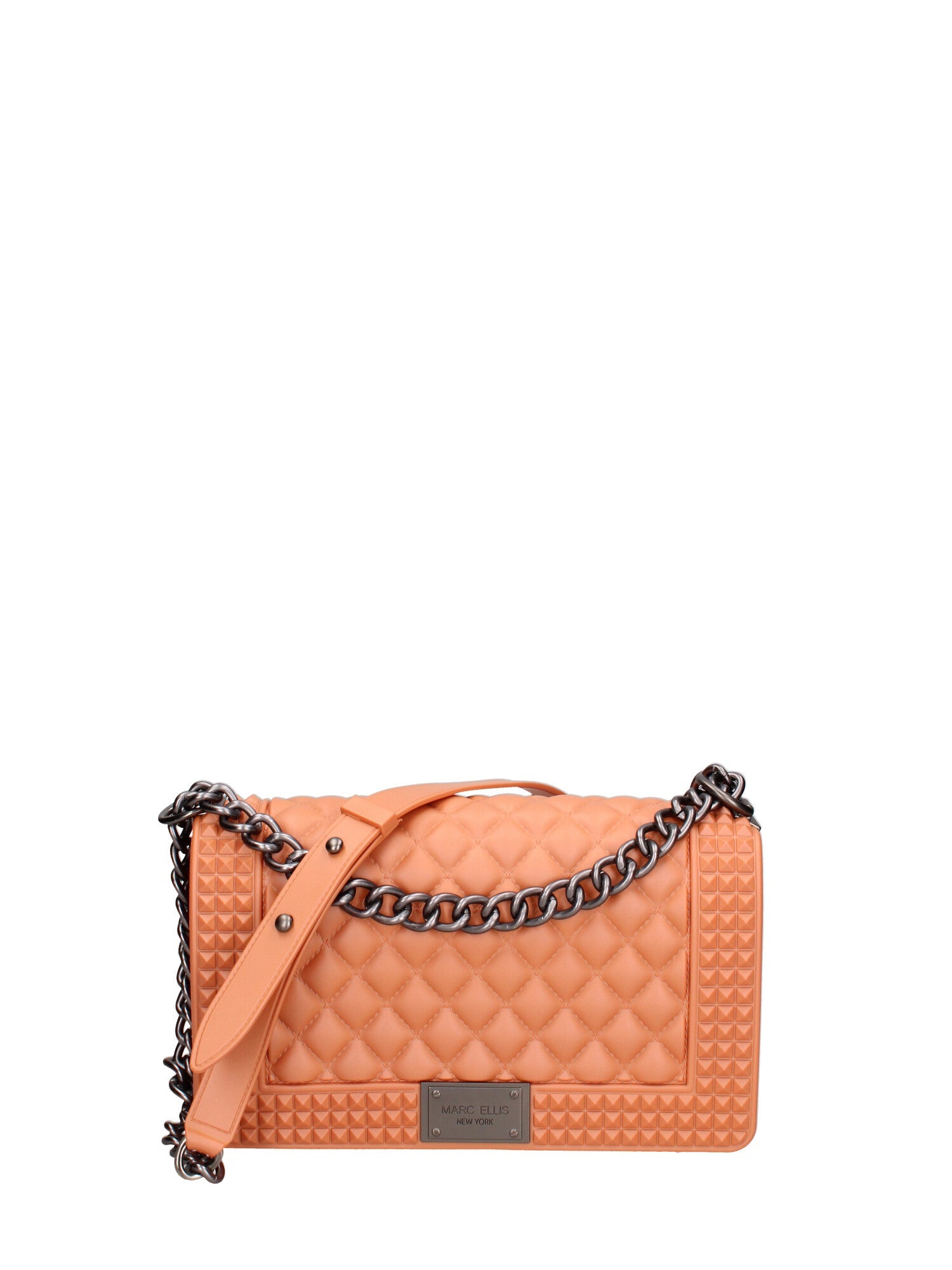 Borsa a mano da donna. La chiusura è con girello. Le tasche interne sono assenti. Le tasche esterne sono assenti. La tracolla è regolabile e rimovibile. Il manico è catena. Gli scomparti interni sono uno. Il materiale esterno è 100% Gomma. Internamente è 100 % Gomma. Misure: 15x25x8 cm . Prodotto Fashion