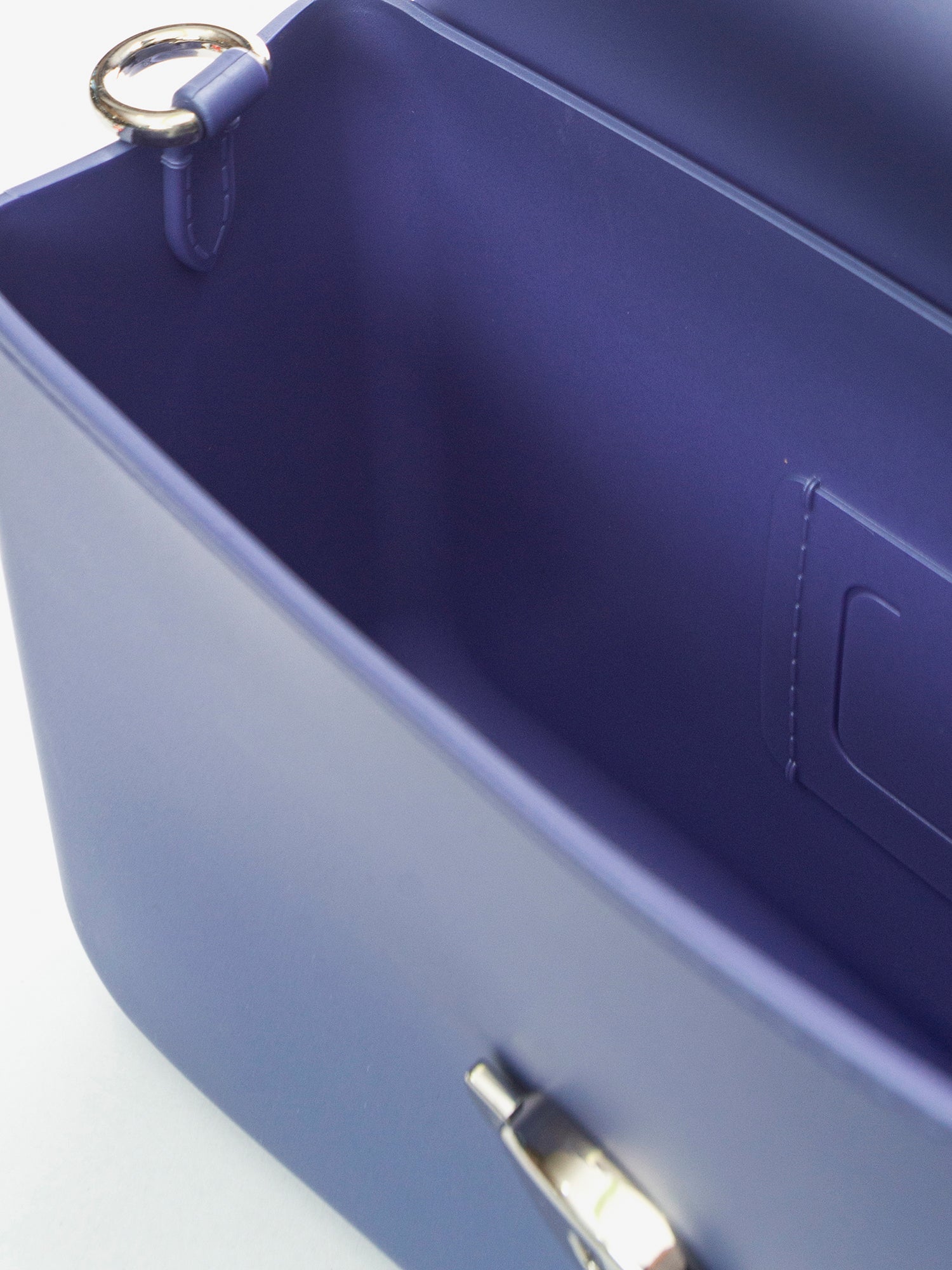 Realizzata interamente in gomma di alta qualità, sia all'esterno che all'interno, questa borsa unisce resistenza e un'estetica contemporanea inaspettata. La sua forma compatta e strutturata è esaltata da una chiusura magnetica pratica e sicura.
