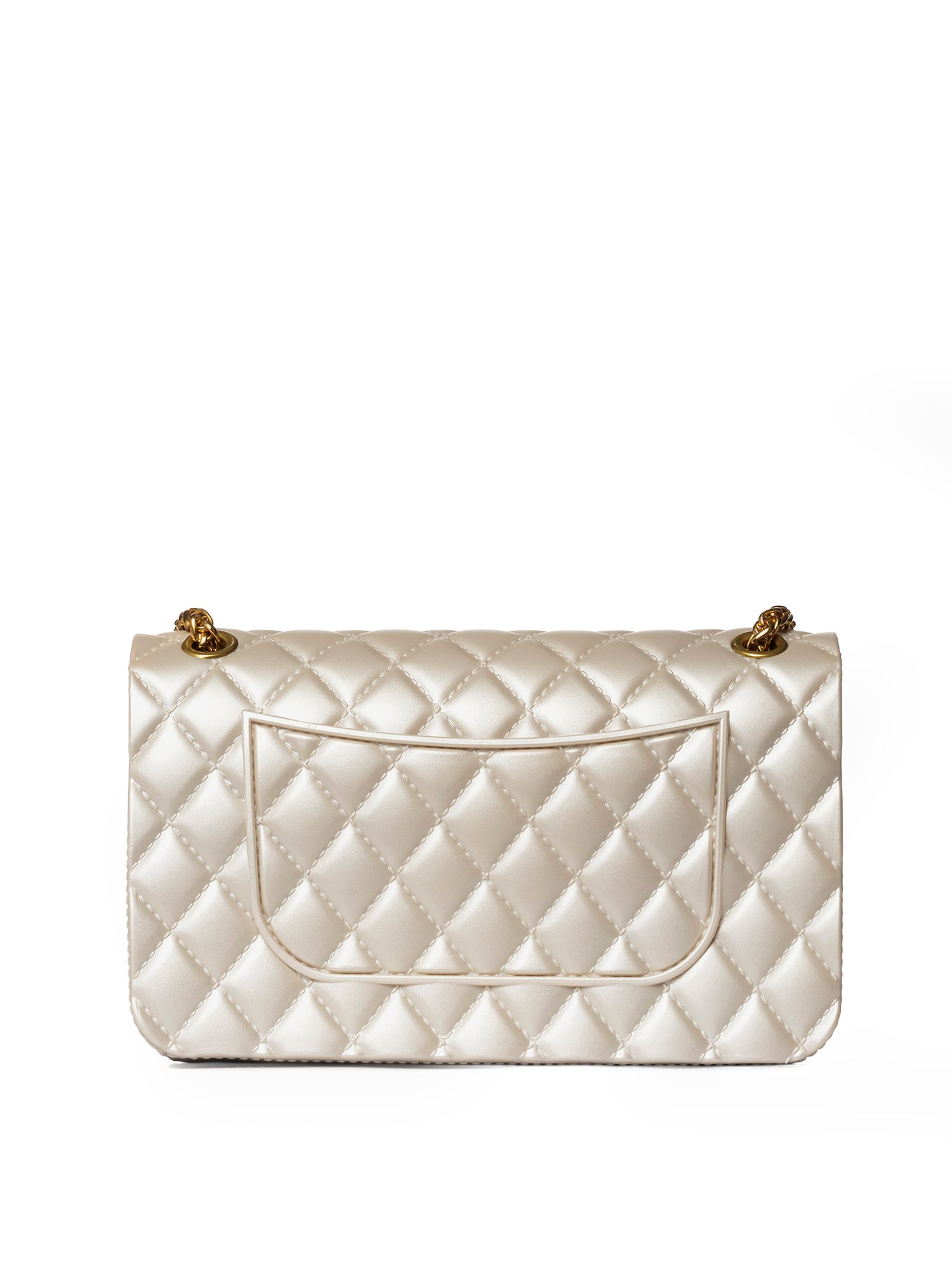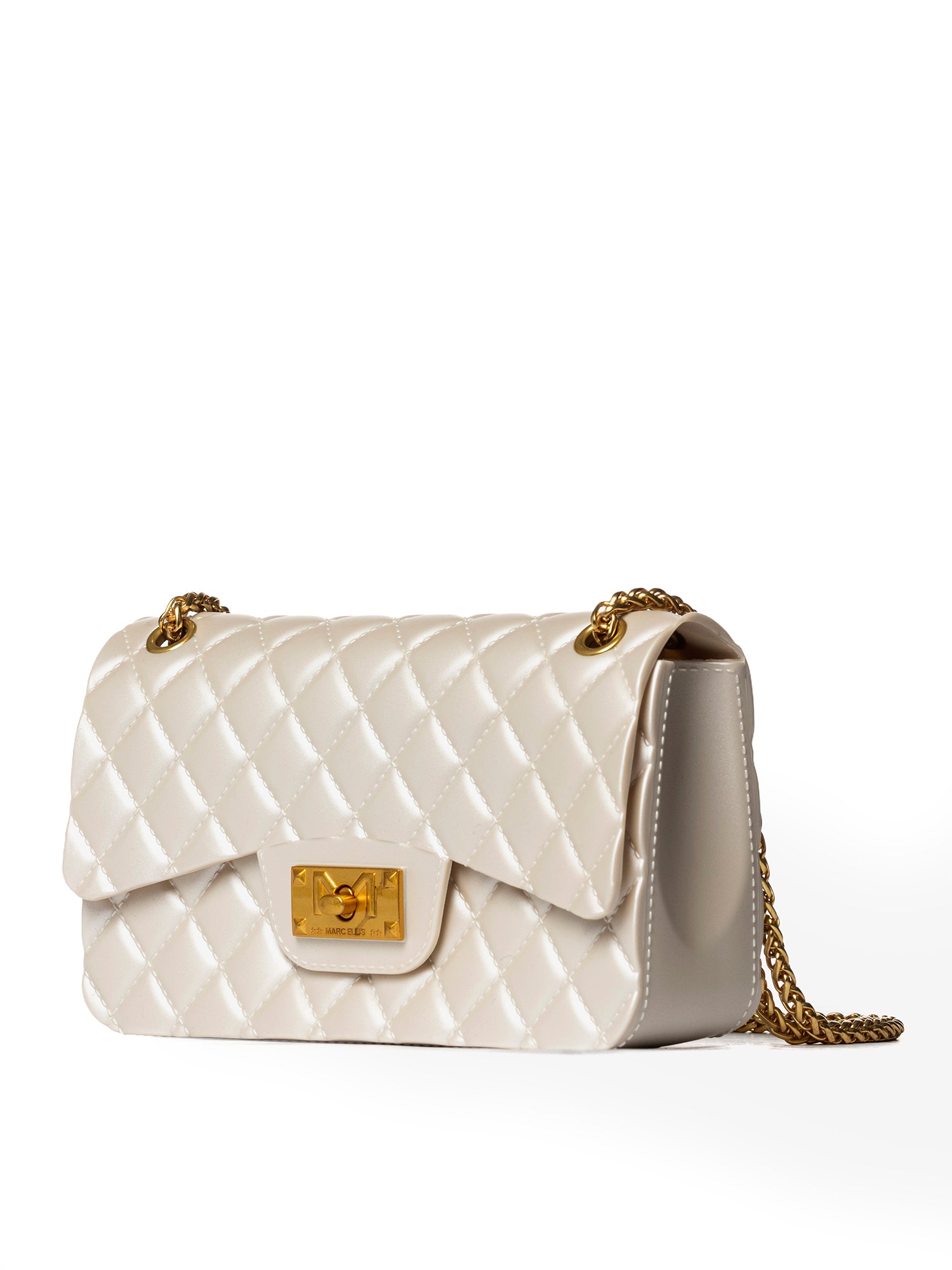 La texture matelassé, lavorata con maestria artigianale, conferisce un tocco di ricercatezza e un fascino senza tempo.