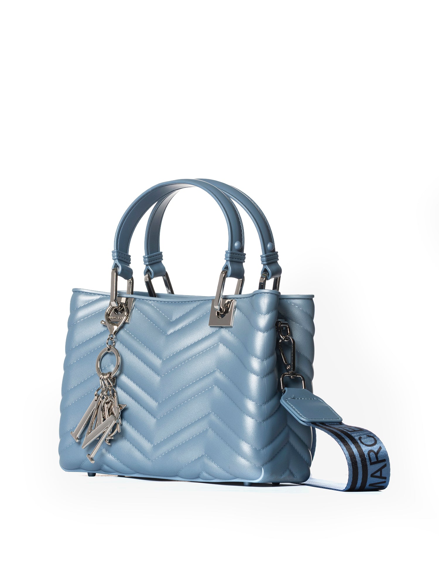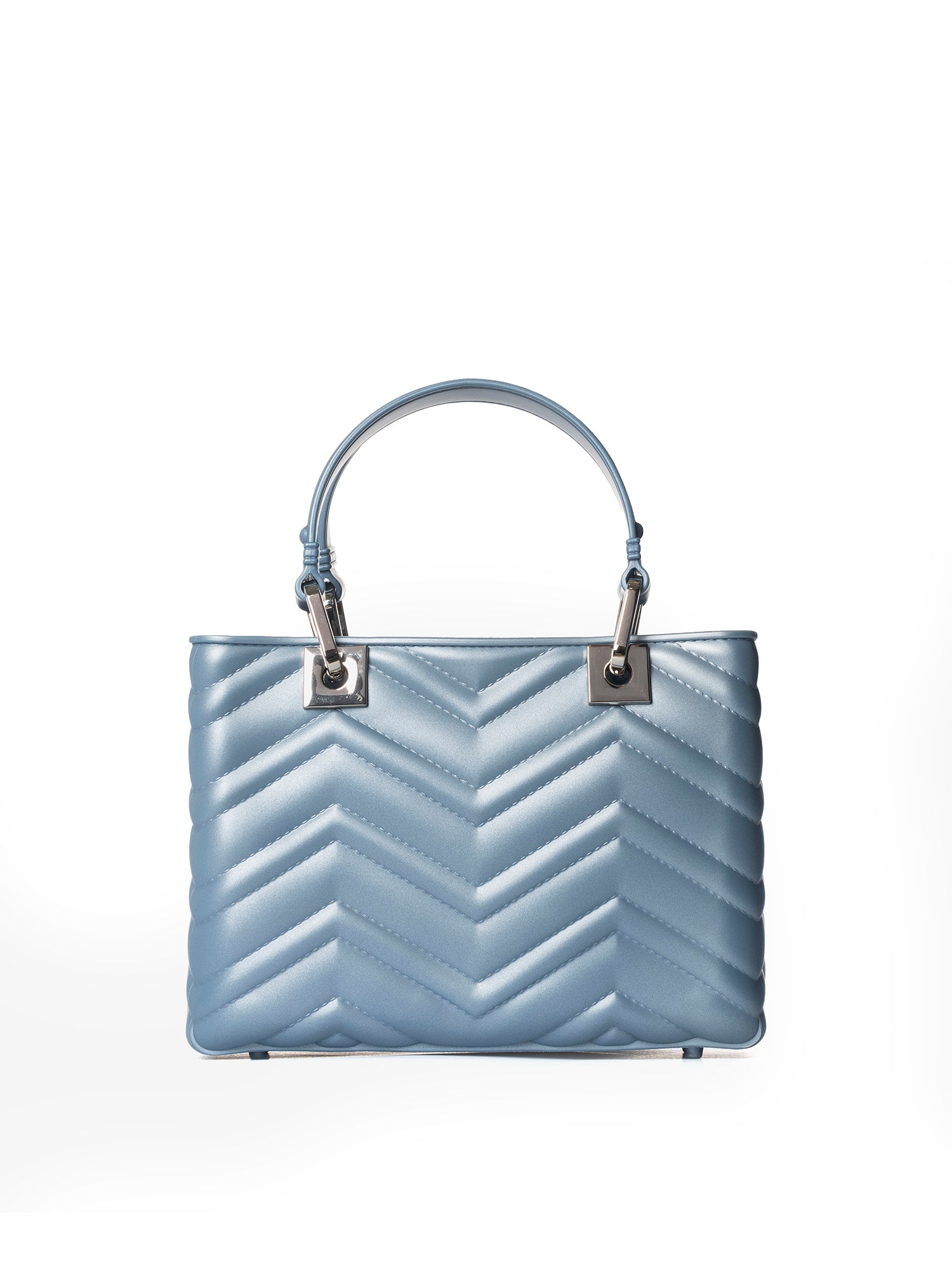 Realizzata interamente in gomma di alta qualità, sia all'interno che all'esterno, questa borsa offre una texture unica e una resistenza sorprendente. La sua elegante silhouette è arricchita da una lavorazione trapuntata che aggiunge profondità e raffinatezza.