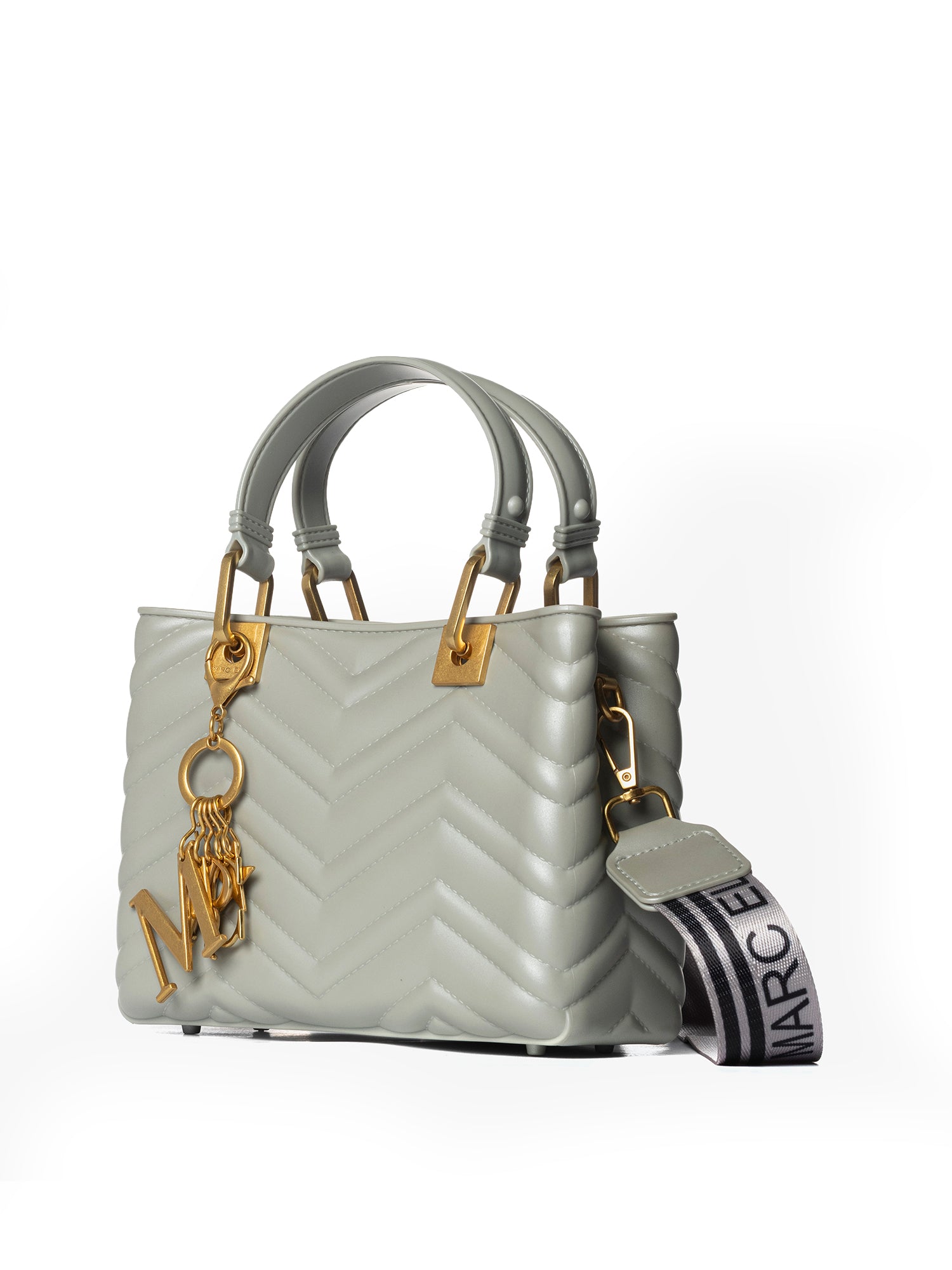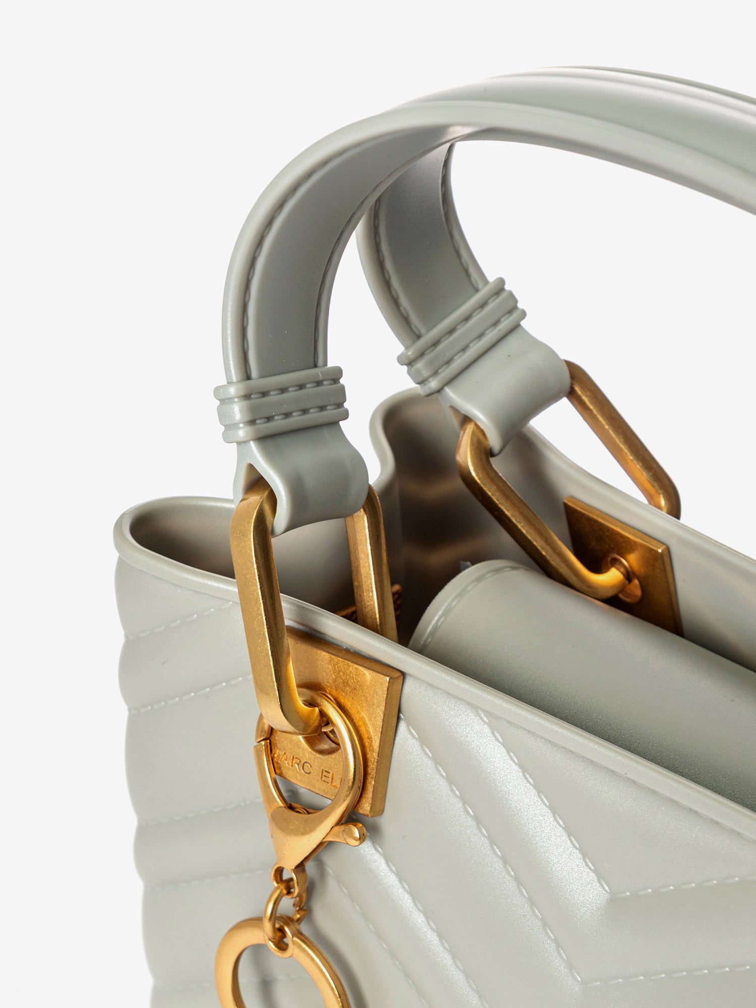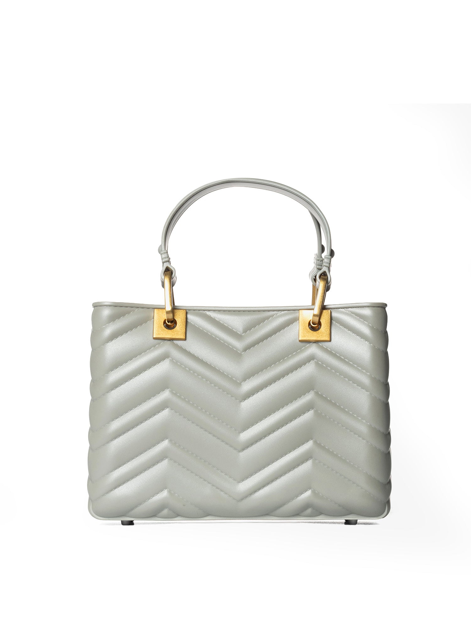 Realizzata interamente in gomma di alta qualità, sia all'interno che all'esterno, questa borsa offre una texture unica e una resistenza sorprendente. La sua elegante silhouette è arricchita da una lavorazione trapuntata che aggiunge profondità e raffinatezza.