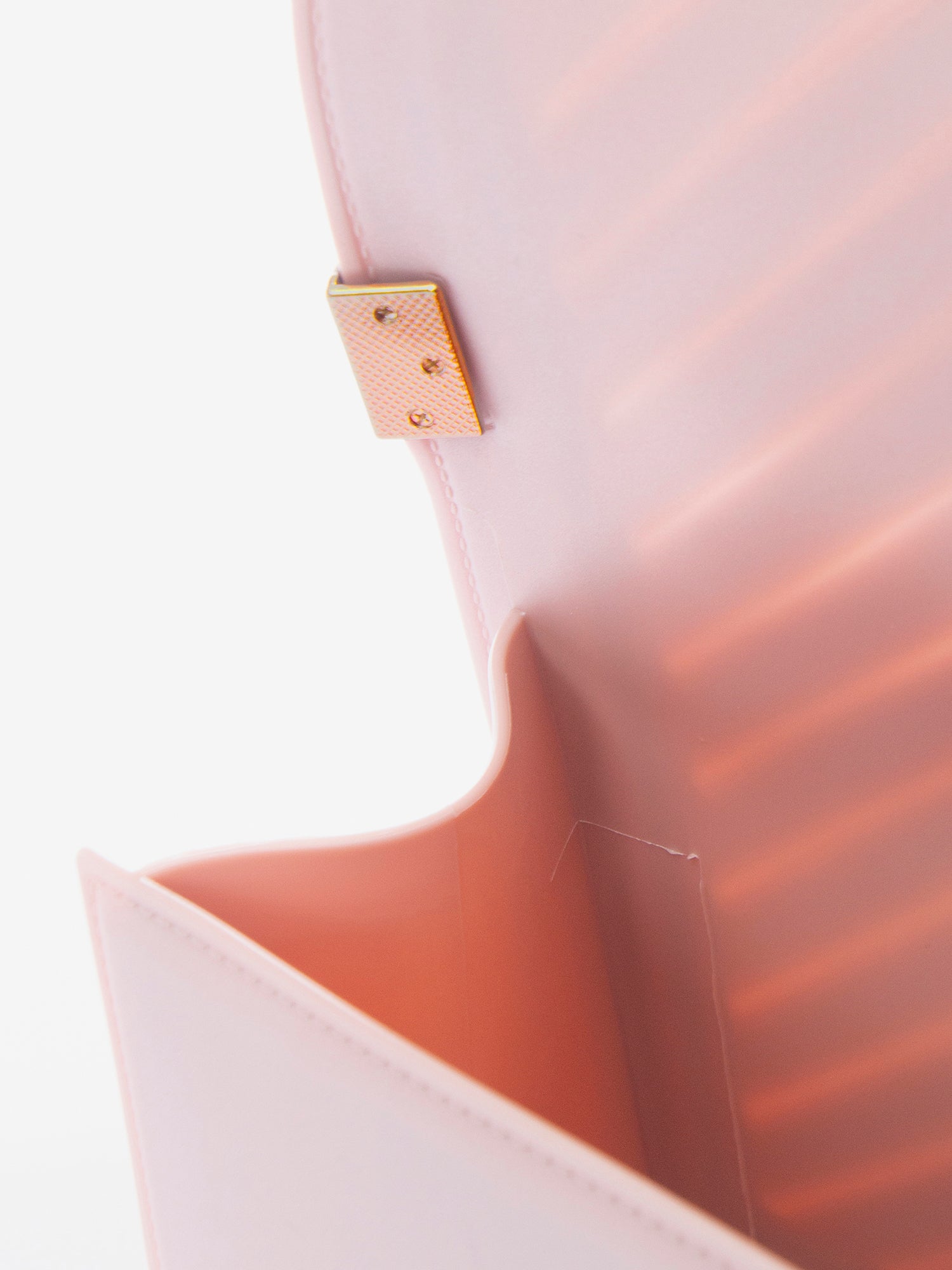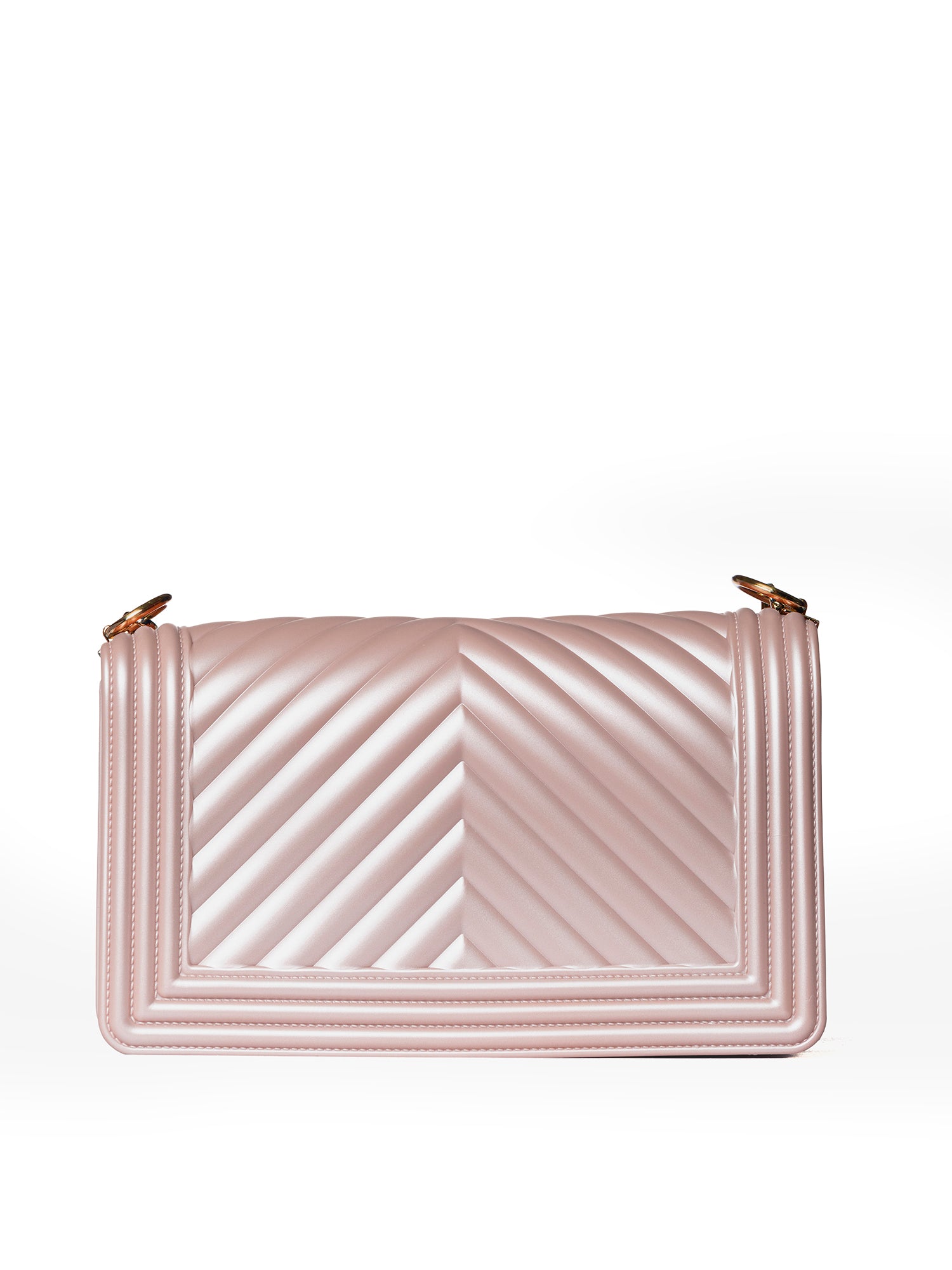 Realizzata interamente in gomma di alta qualità, sia all'interno che all'esterno, questa borsa offre una texture unica e una resistenza sorprendente. Il design elegante è arricchito da una chiusura a girello che aggiunge un tocco di raffinatezza.