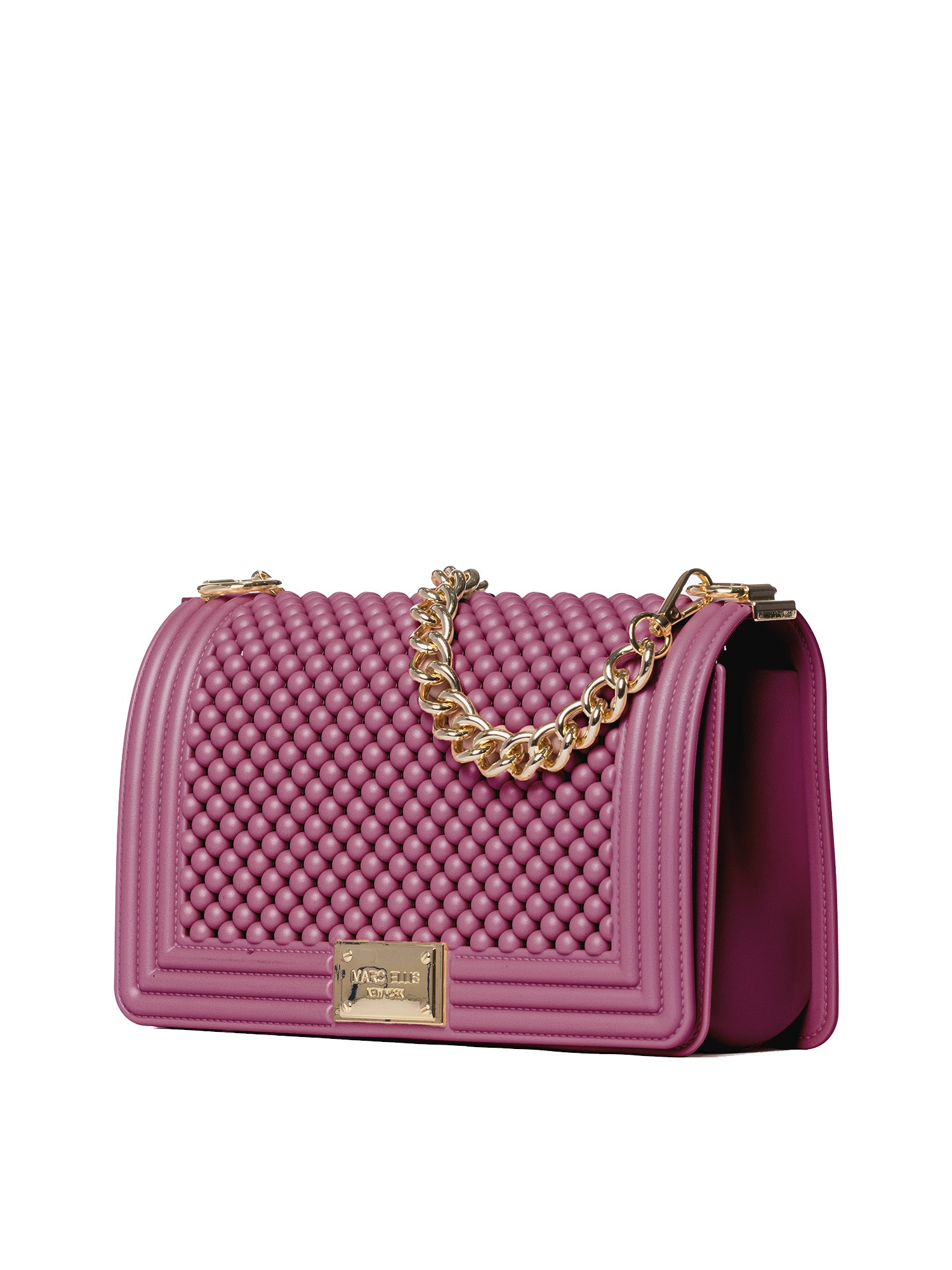 Realizzata interamente in gomma di alta qualità, sia all'interno che all'esterno, questa borsa unisce un'estetica moderna a una praticità sorprendente. La texture tridimensionale, ottenuta grazie a una lavorazione artigianale meticolosa, conferisce un tocco unico e distintivo.