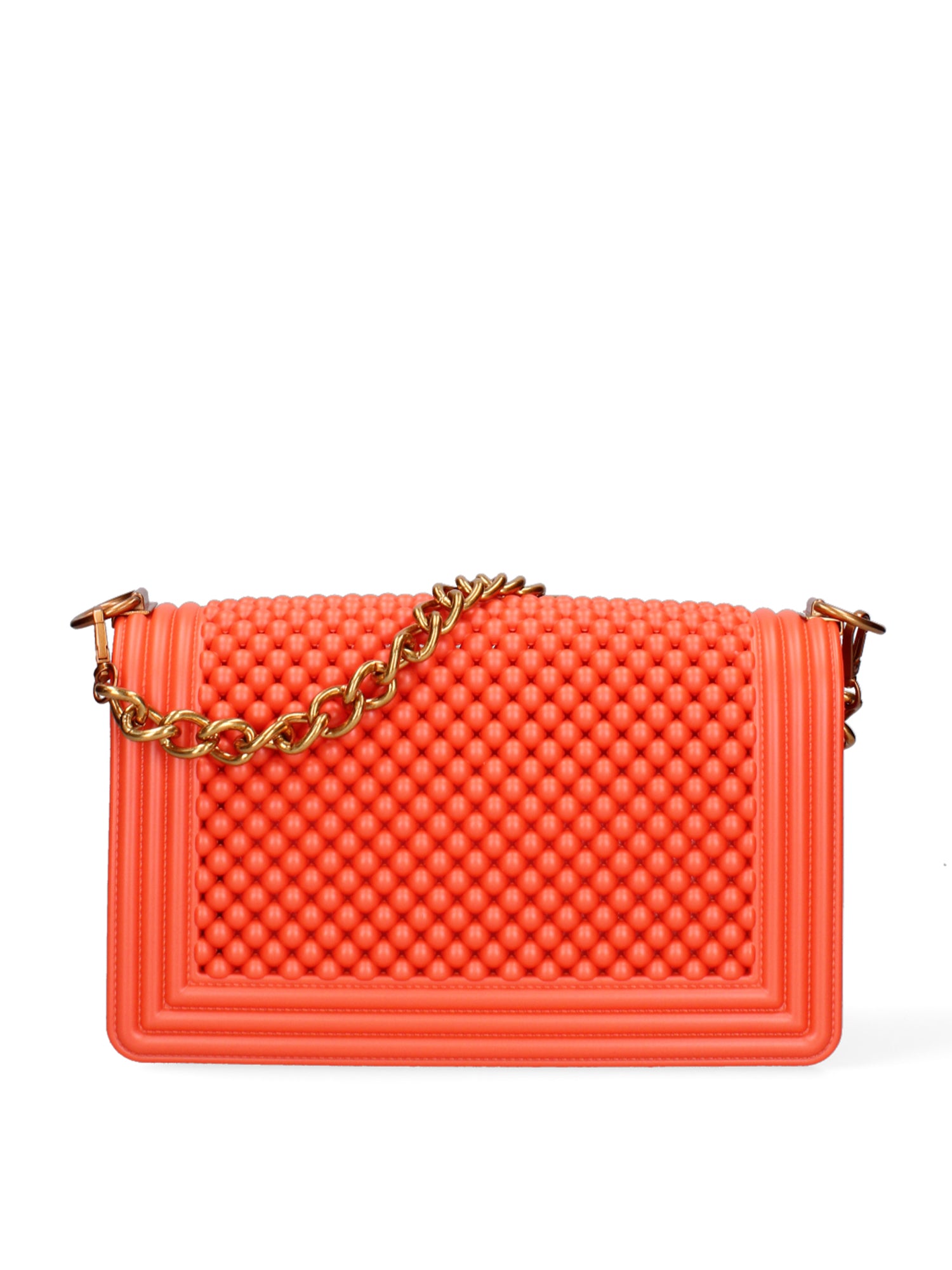 La chiusura a girello, elegante e sicura, aggiunge un tocco di raffinatezza, mentre la catena a spalla permette di indossare la borsa con stile e comodità. Questa borsa non è solo un accessorio di moda, ma una vera e propria dichiarazione di stile.
