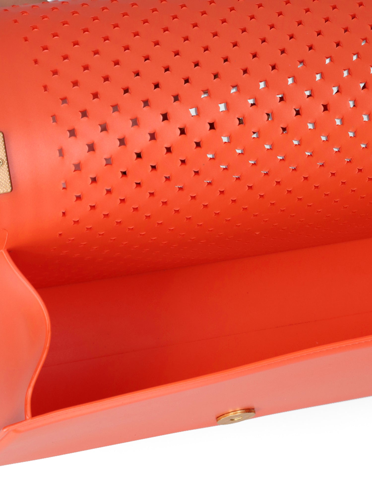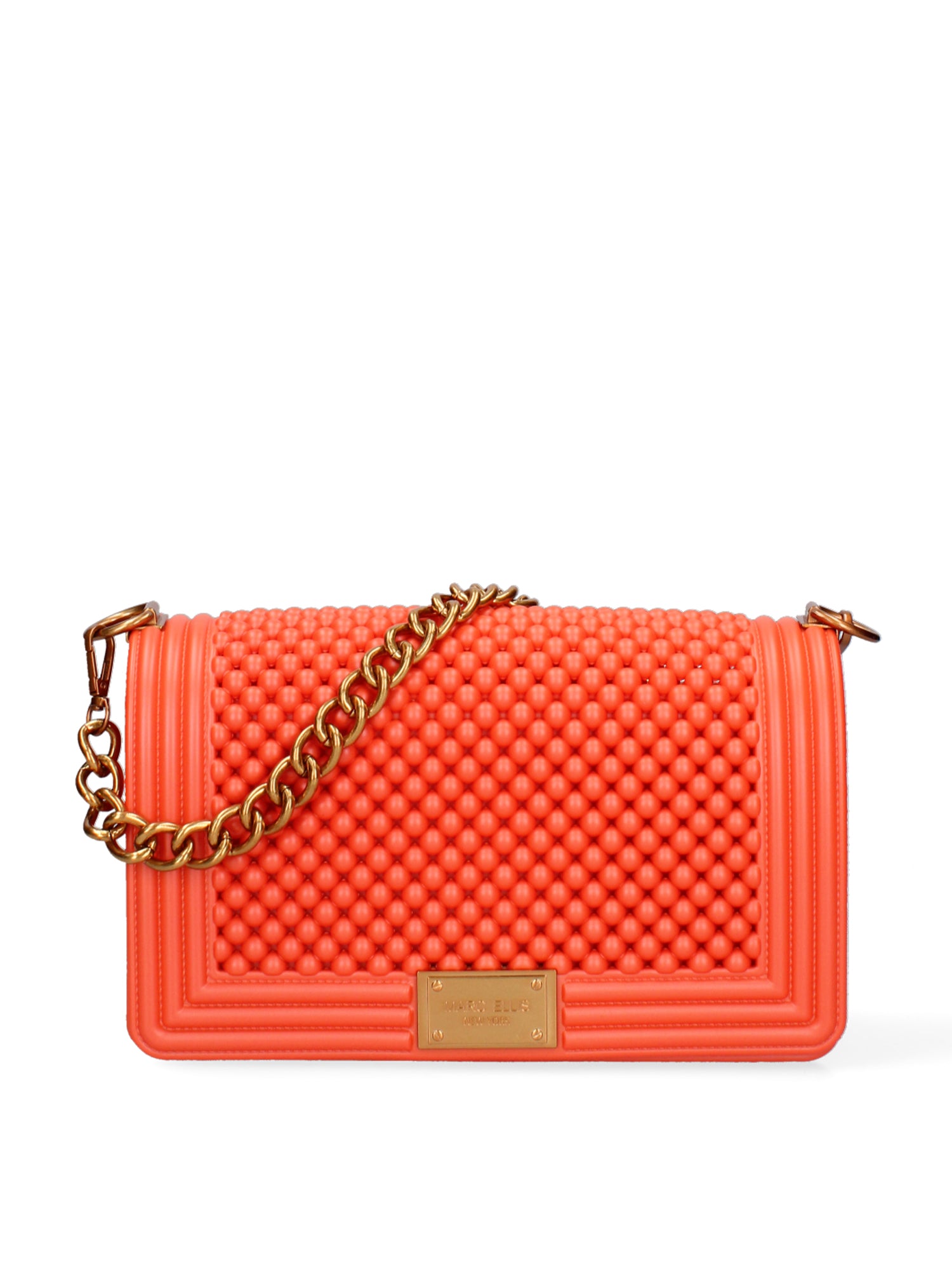 Realizzata interamente in gomma di alta qualità, sia all'interno che all'esterno, questa borsa unisce un'estetica moderna a una praticità sorprendente. La texture tridimensionale, ottenuta grazie a una lavorazione artigianale meticolosa, conferisce un tocco unico e distintivo.