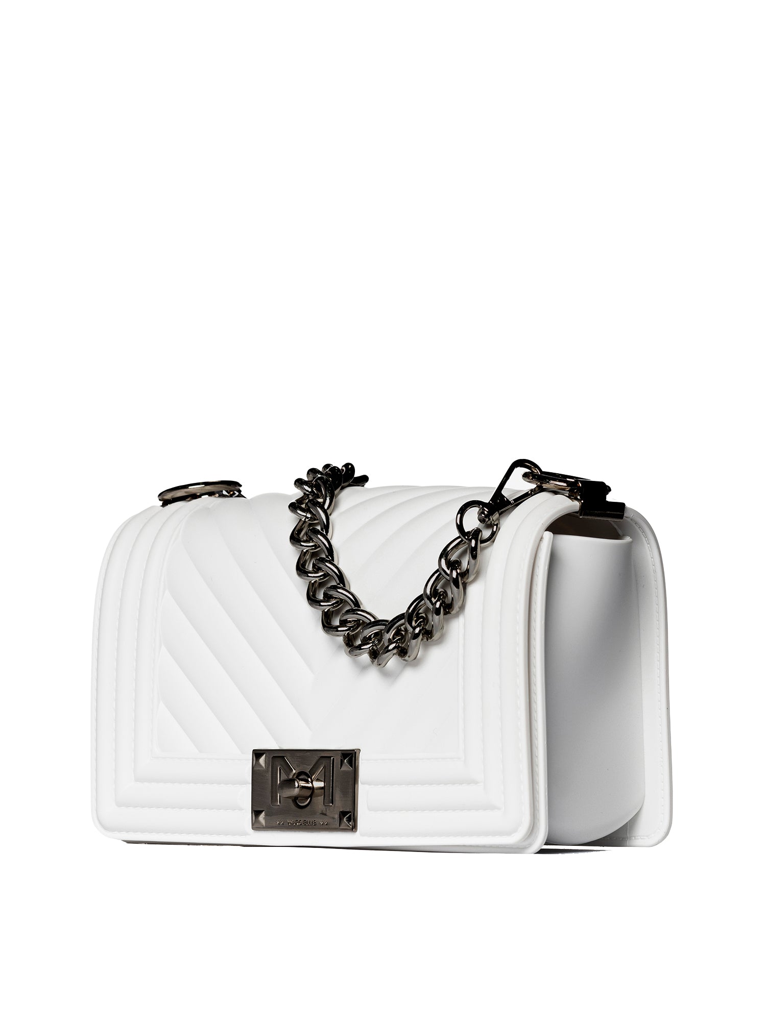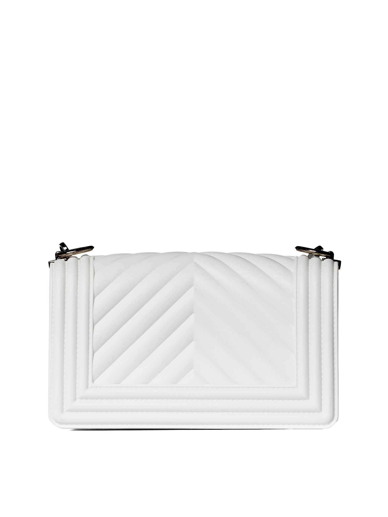 Realizzata interamente in gomma di alta qualità, sia all'interno che all'esterno, questa borsa offre un tocco moderno e distintivo, garantendo al contempo resistenza e praticità. La texture elegante, caratterizzata da una raffinata lavorazione a pieghe, conferisce un fascino unico e versatile, perfetto per completare outfit casual e ricercati.