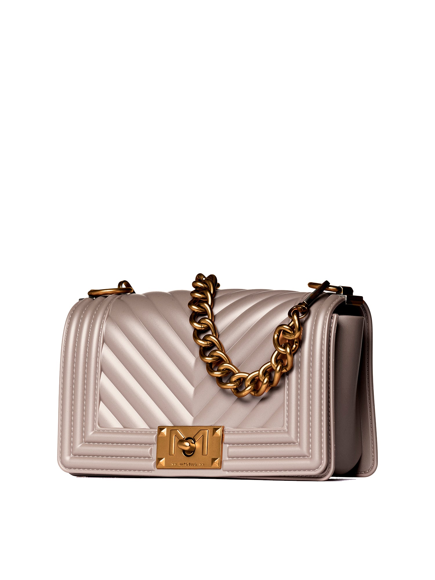 Realizzata interamente in gomma di alta qualità, sia all'interno che all'esterno, questa borsa offre un tocco moderno e distintivo, garantendo al contempo resistenza e praticità. La texture elegante, caratterizzata da una raffinata lavorazione a pieghe, conferisce un fascino unico e versatile, perfetto per completare outfit casual e ricercati.