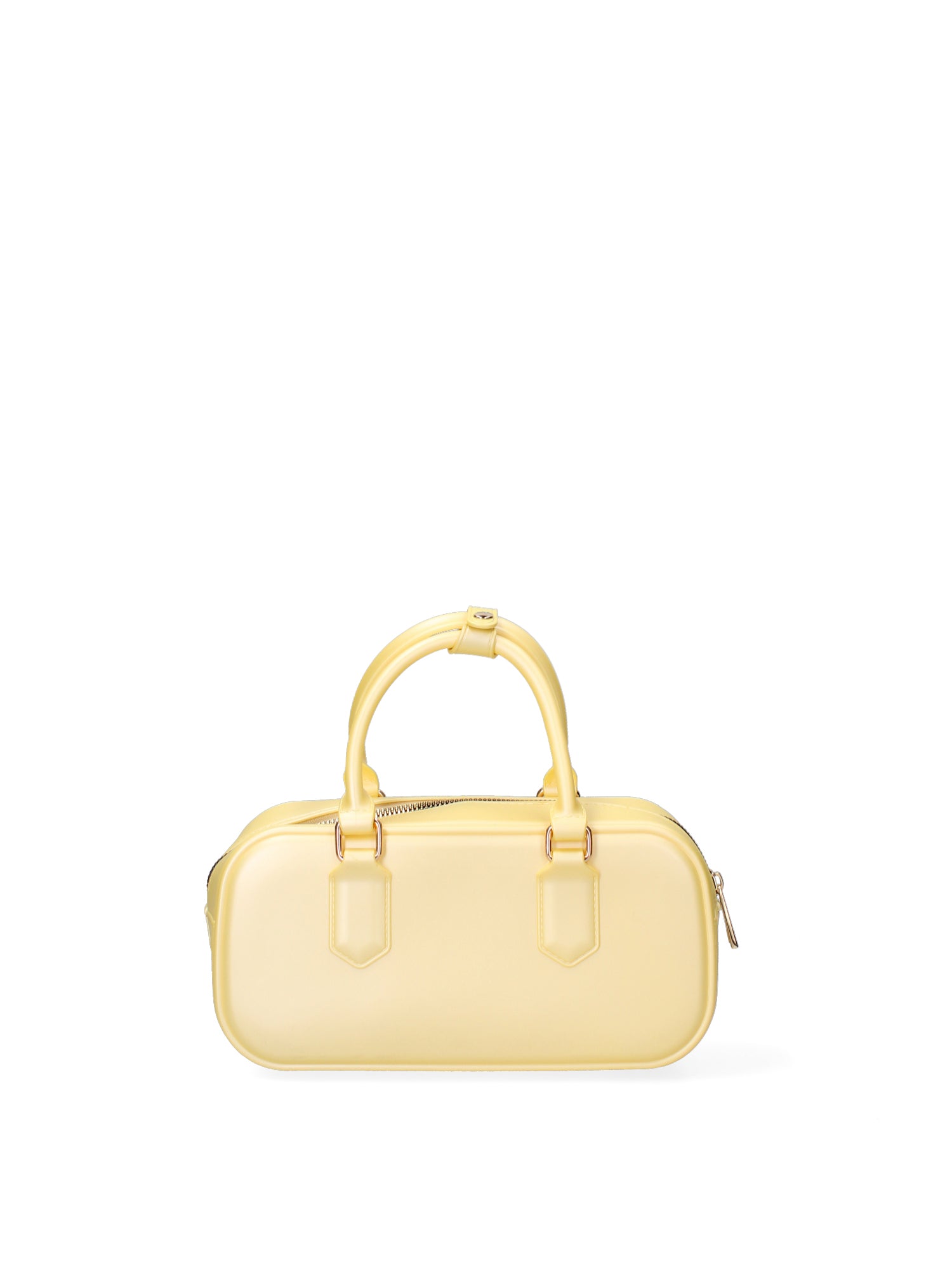 Realizzata interamente in gomma di alta qualità, sia all'interno che all'esterno, questa borsa offre una resistenza sorprendente e una sensazione tattile unica. Il design compatto e strutturato, arricchito da una chiusura a zip pratica e sicura, la rende perfetta per portare con sé l'essenziale con un tocco di raffinatezza.