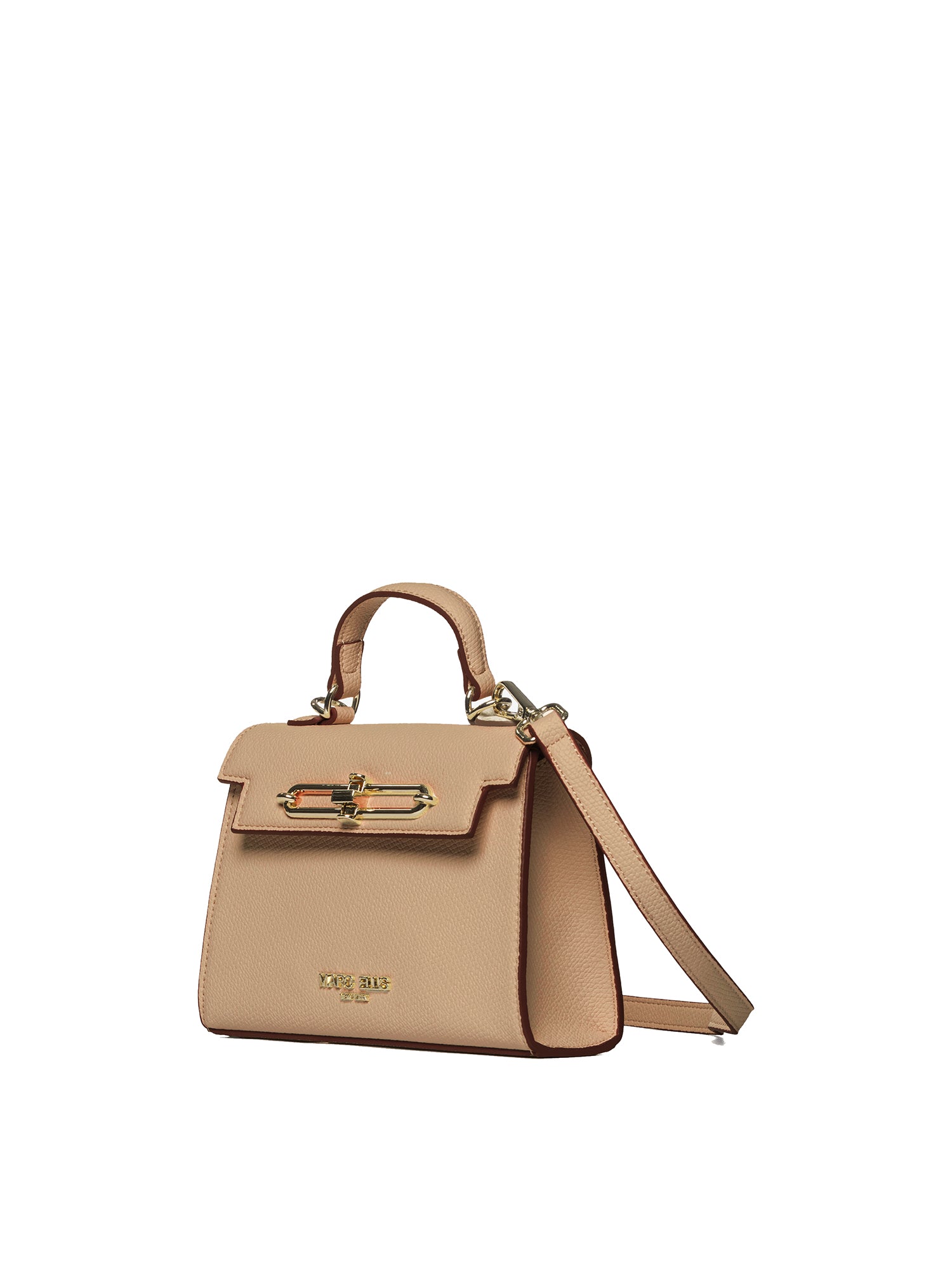 Realizzata in pregiato poliuretano, la sua texture liscia e resistente evoca un senso di lusso accessibile. L'attenzione ai dettagli si manifesta nella chiusura a twist lock, un elemento iconico che aggiunge un tocco vintage e sofisticato.