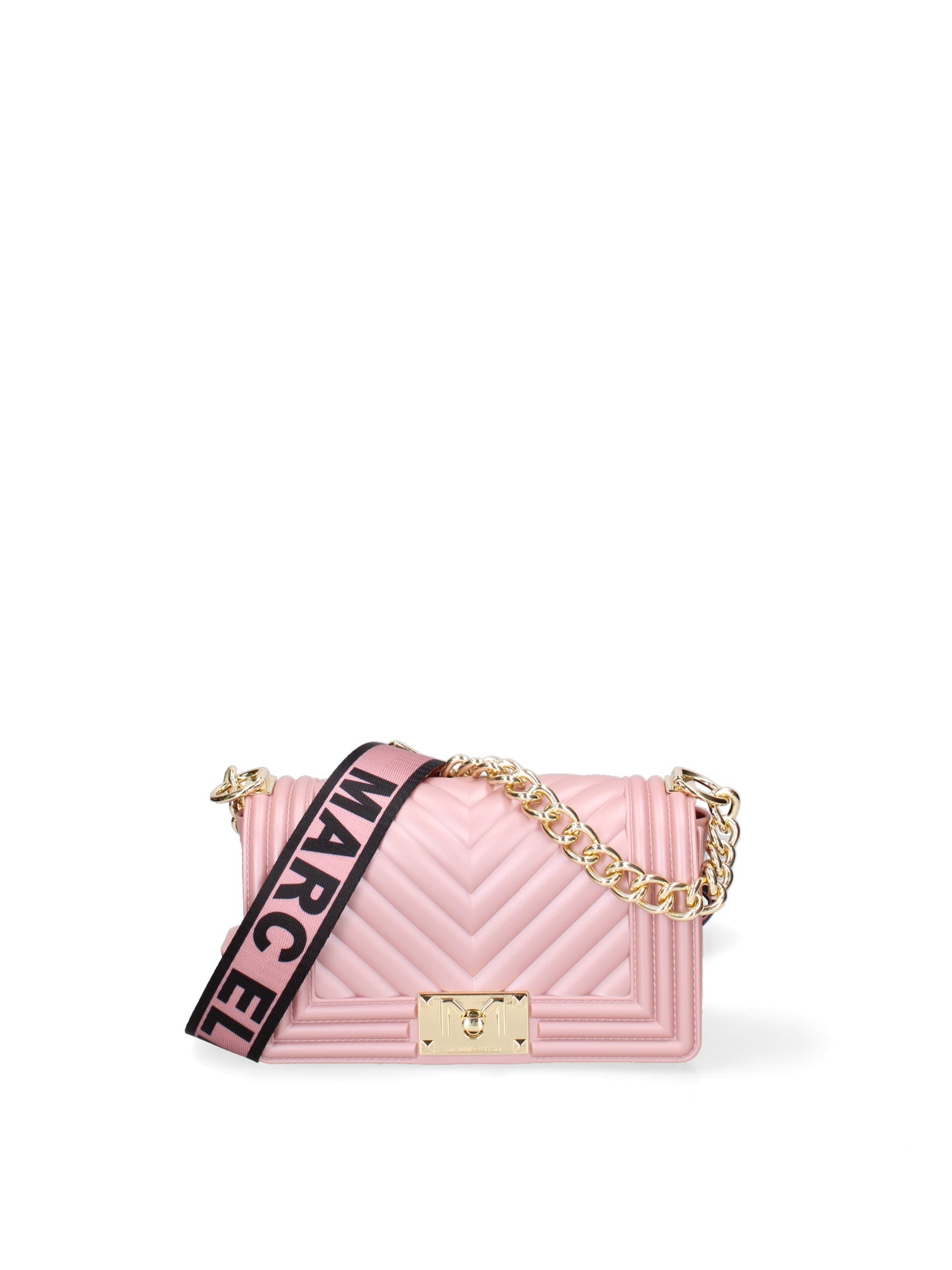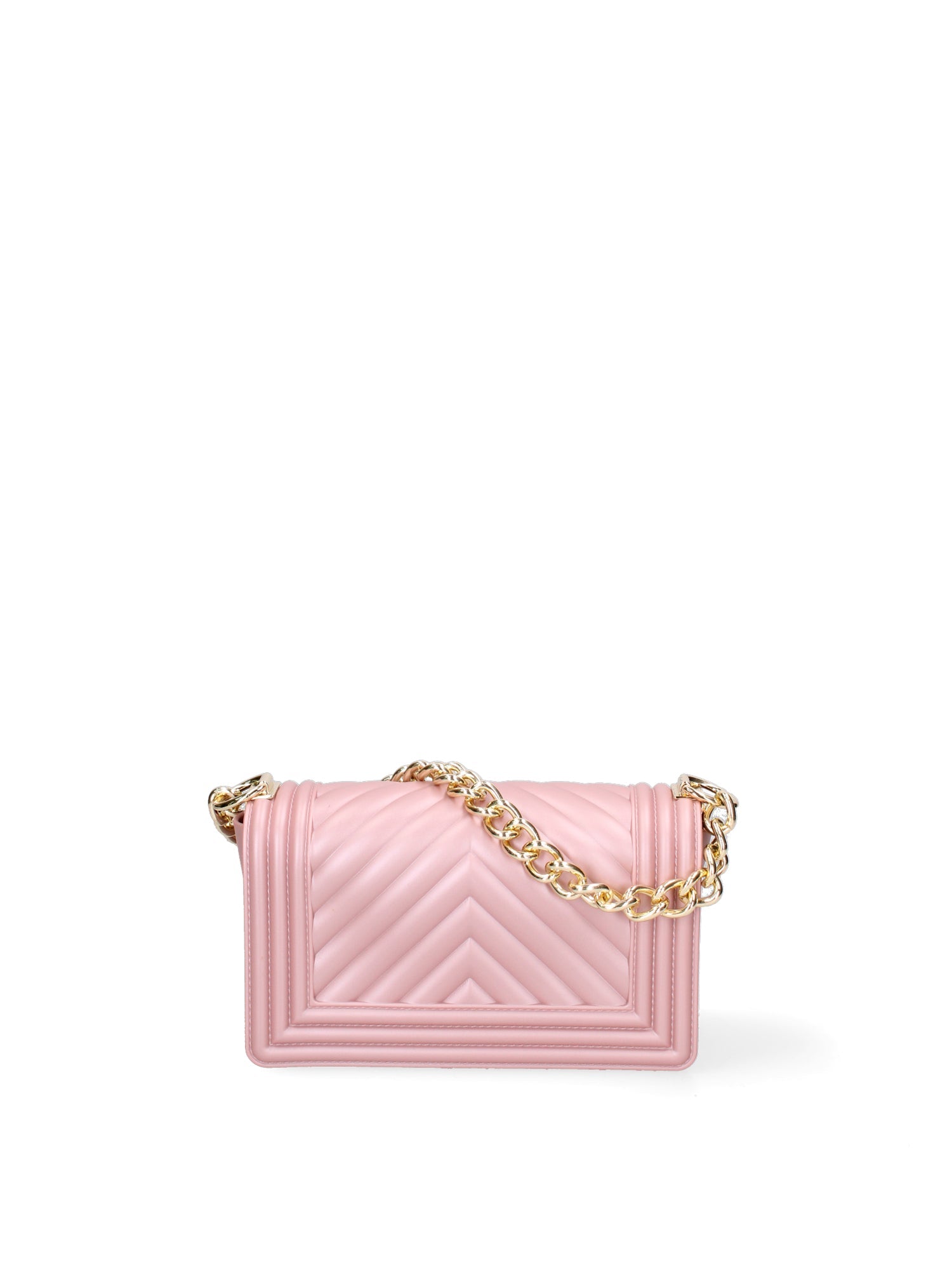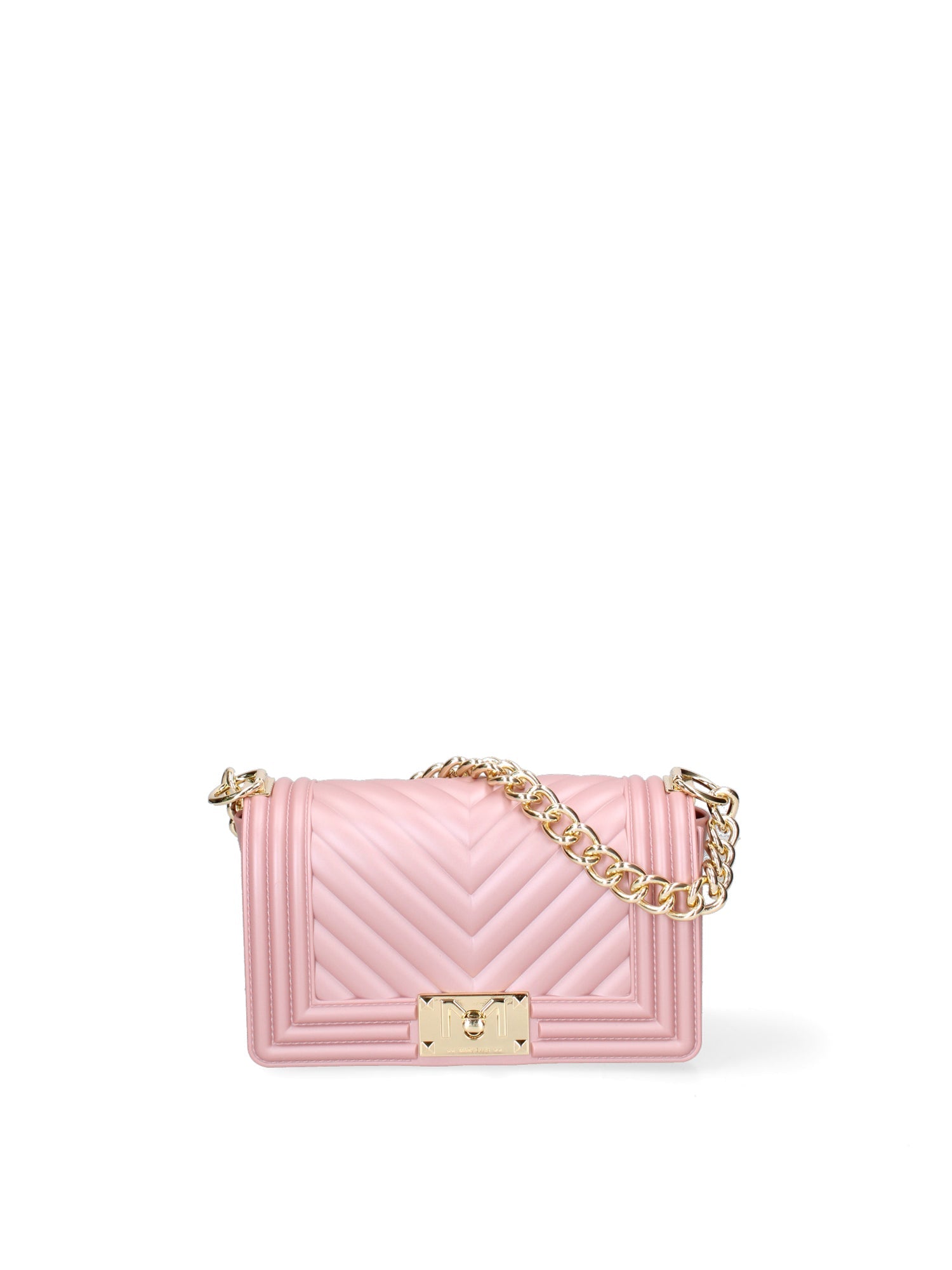 Borsa a mano da donna. La chiusura è con girello. Le tasche interne sono assenti. Le tasche esterne sono assenti. La tracolla è regolabile e rimovibile in tessuto. Il manico è catena. Gli scomparti interni sono uno.