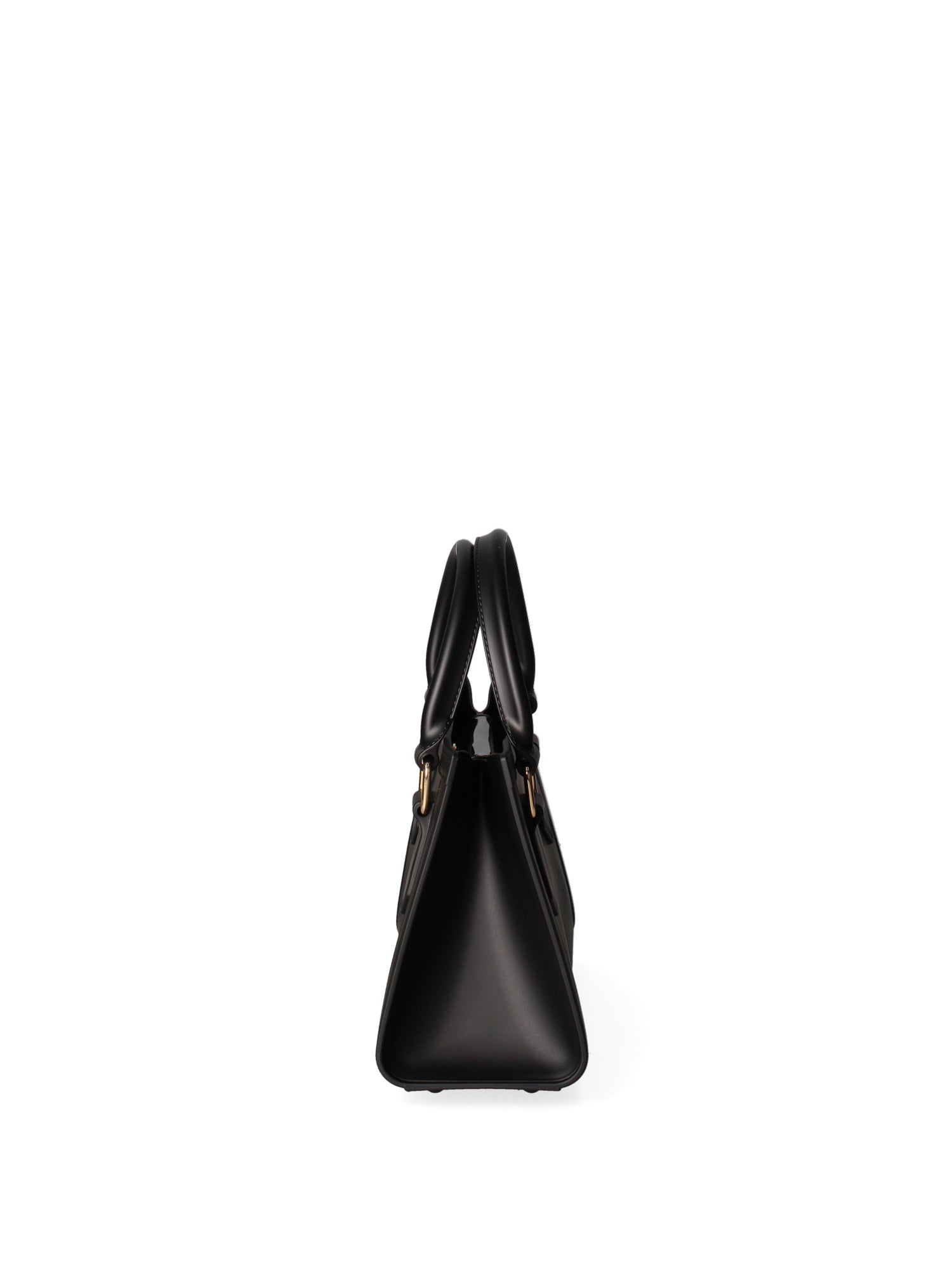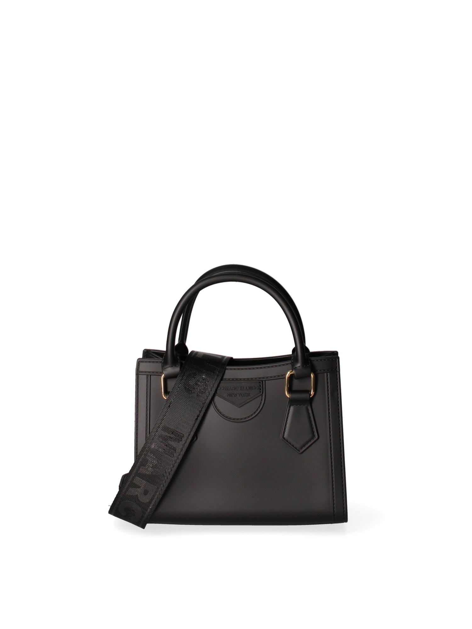 Borsa a mano da donna. La chiusura è con bottone a pressione. Le tasche interne sono assenti. Le tasche esterne sono assenti. La tracolla è regolabile e rimovibile in tessuto. Il manico è in pvc.