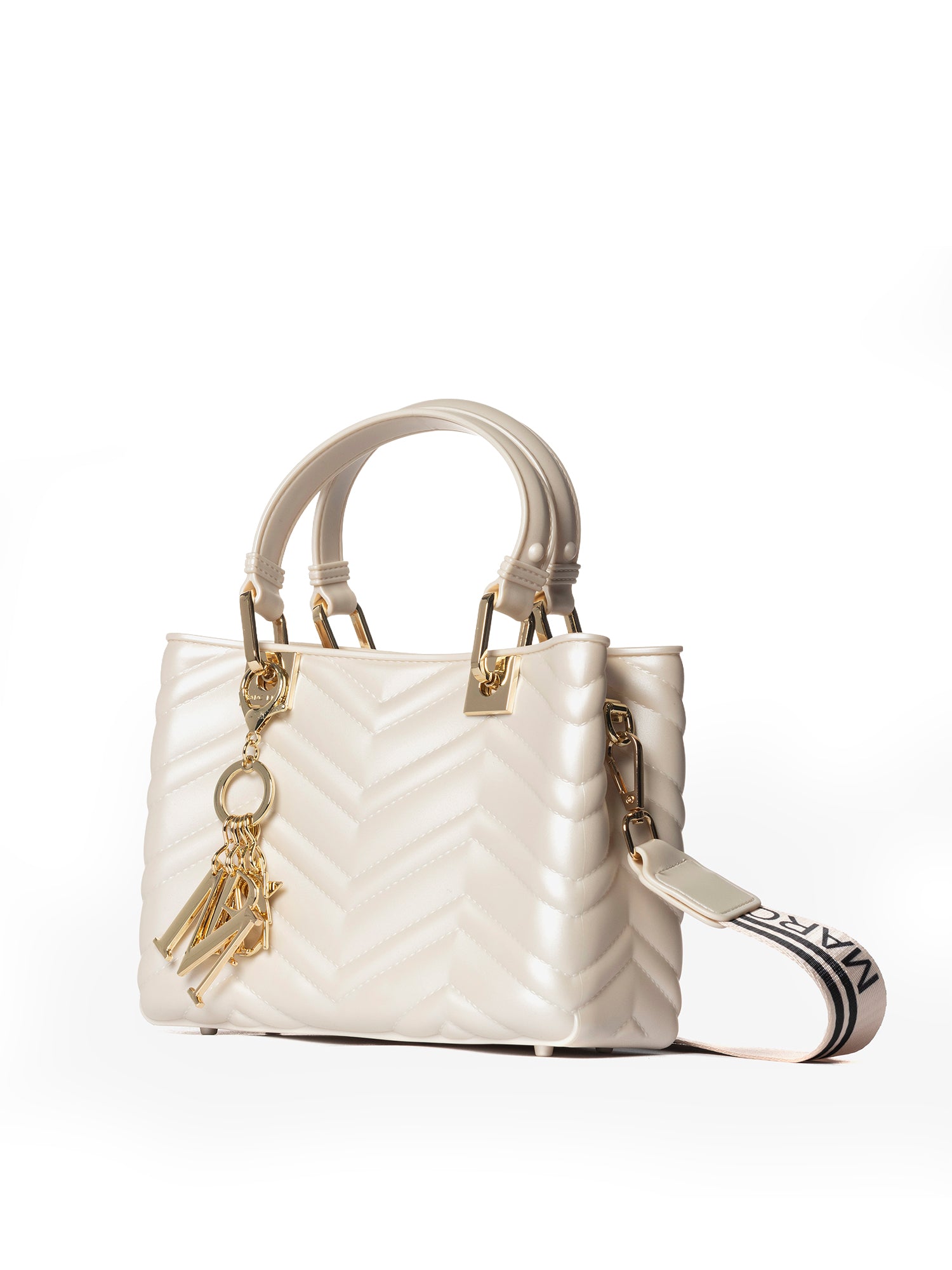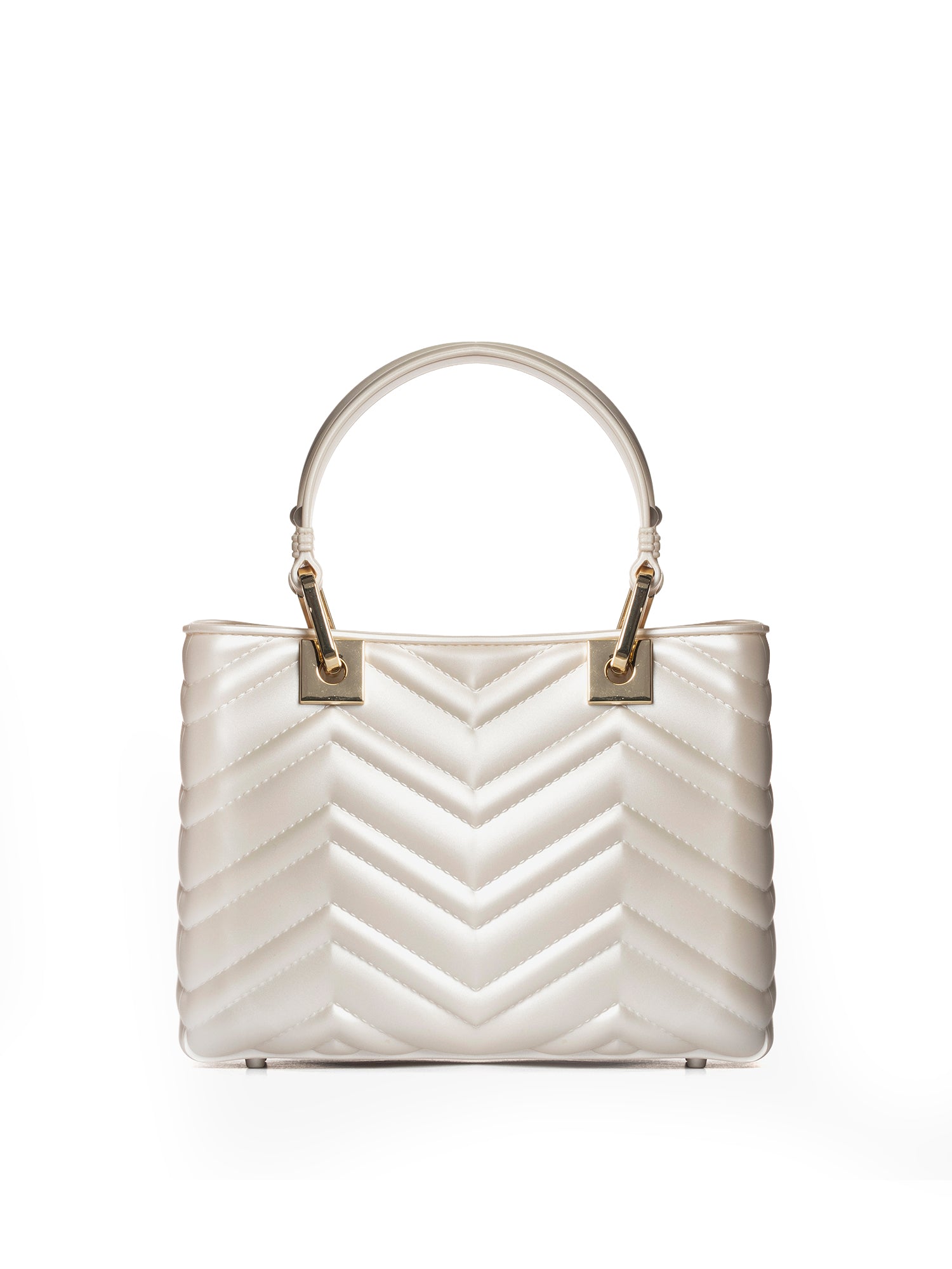Realizzata interamente in gomma di alta qualità, sia all'interno che all'esterno, questa borsa offre una texture unica e una resistenza sorprendente. La sua elegante silhouette è arricchita da una lavorazione trapuntata che aggiunge profondità e raffinatezza.