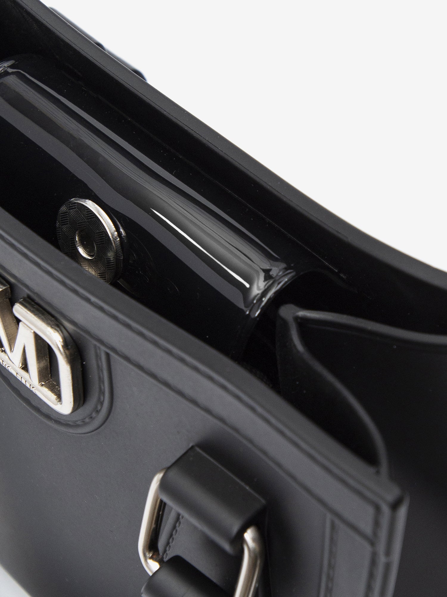 Realizzata interamente in gomma di alta qualità, sia all'interno che all'esterno, questa borsa offre una resistenza e una flessibilità uniche, garantendo una durata nel tempo eccezionale. L'artigianalità è al centro di questa creazione fashion, che si distingue per la sua forma strutturata e i dettagli curati.