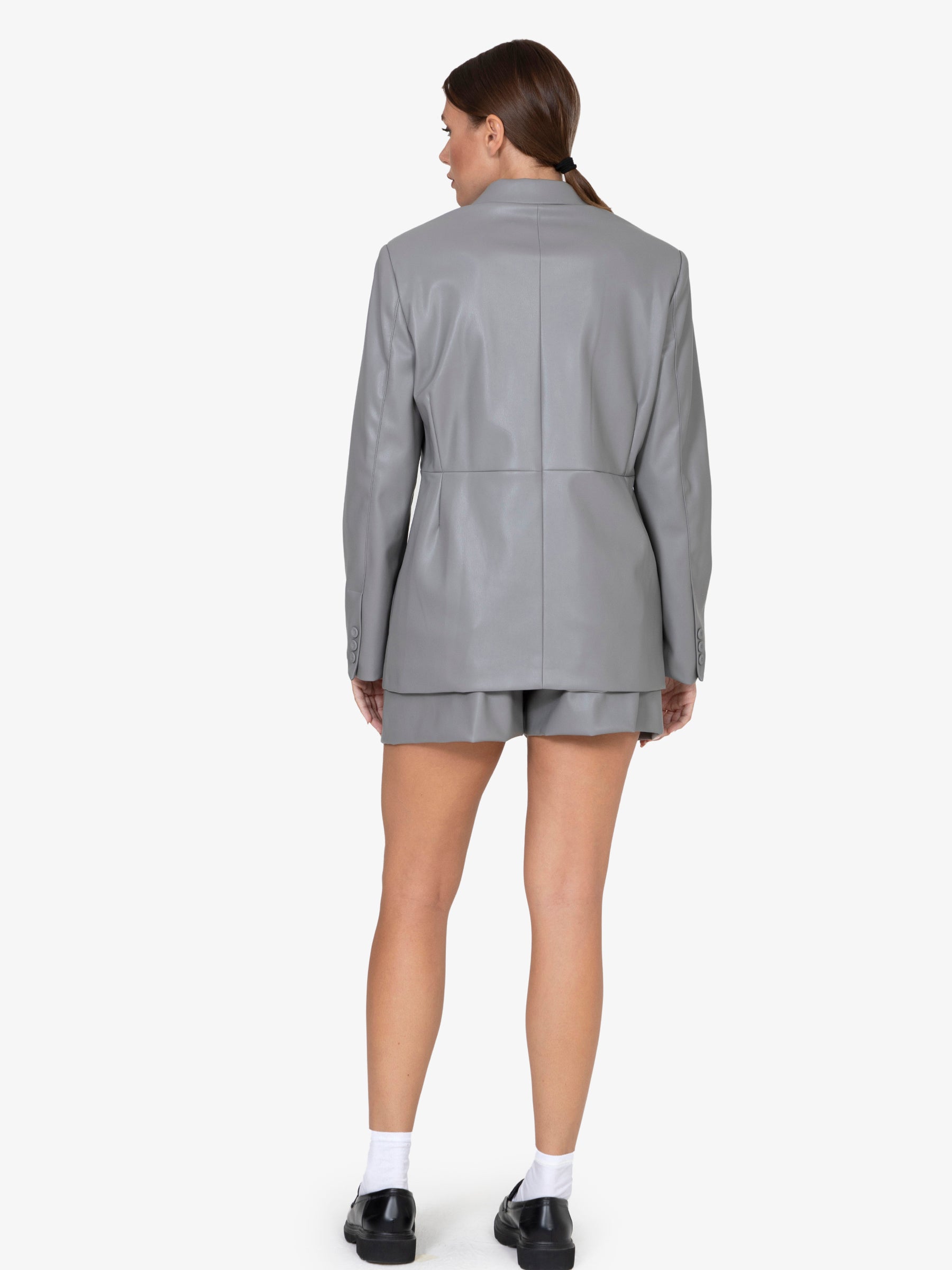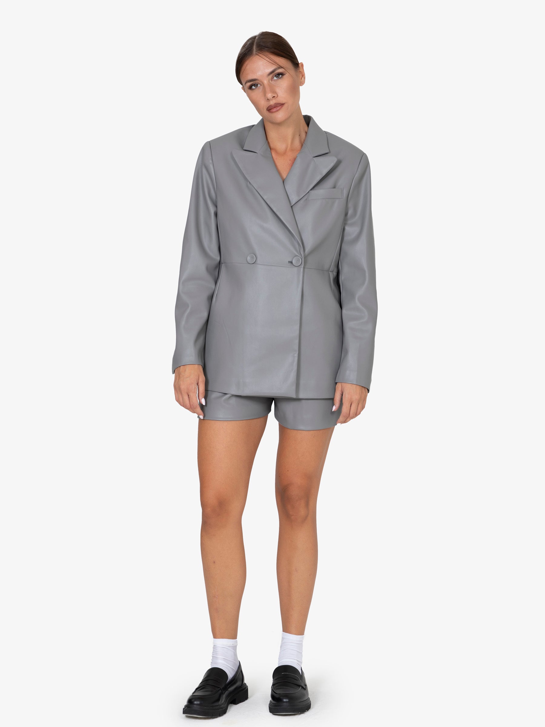 Il taglio sartoriale, accentuato dalla chiusura assente che ne esalta la silhouette, la rende un capo versatile, perfetto per un look casual chic o per occasioni più ricercate. La fodera interna in poliestere assicura una vestibilità confortevole e una sensazione di lusso sulla pelle.