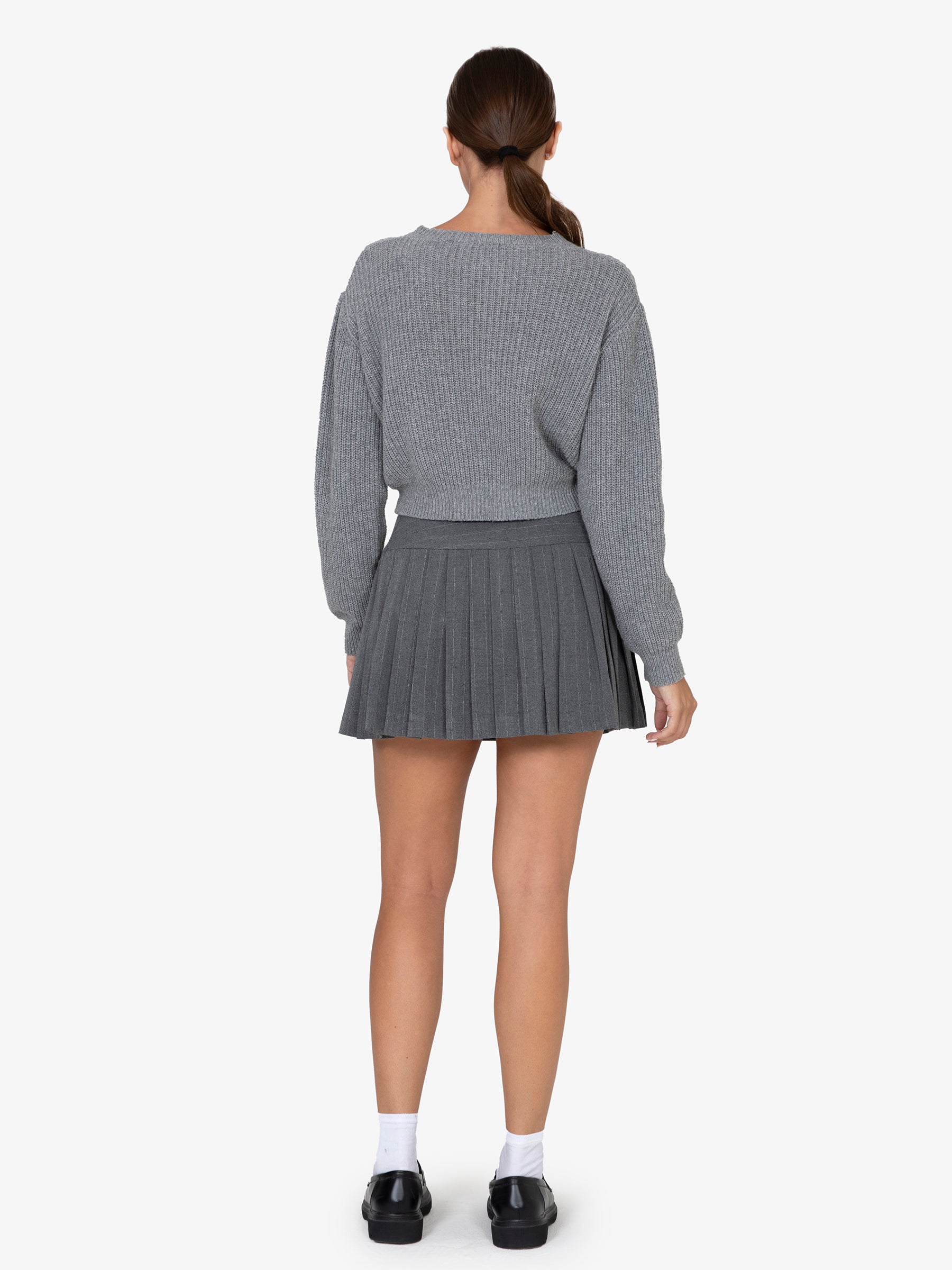 Realizzato interamente in Italia, questo maglione è un esempio di artigianalità e attenzione ai dettagli. La sua silhouette corta e moderna lo rende ideale per valorizzare la figura, mentre la sua eleganza senza tempo lo rende un investimento duraturo nel tuo guardaroba.