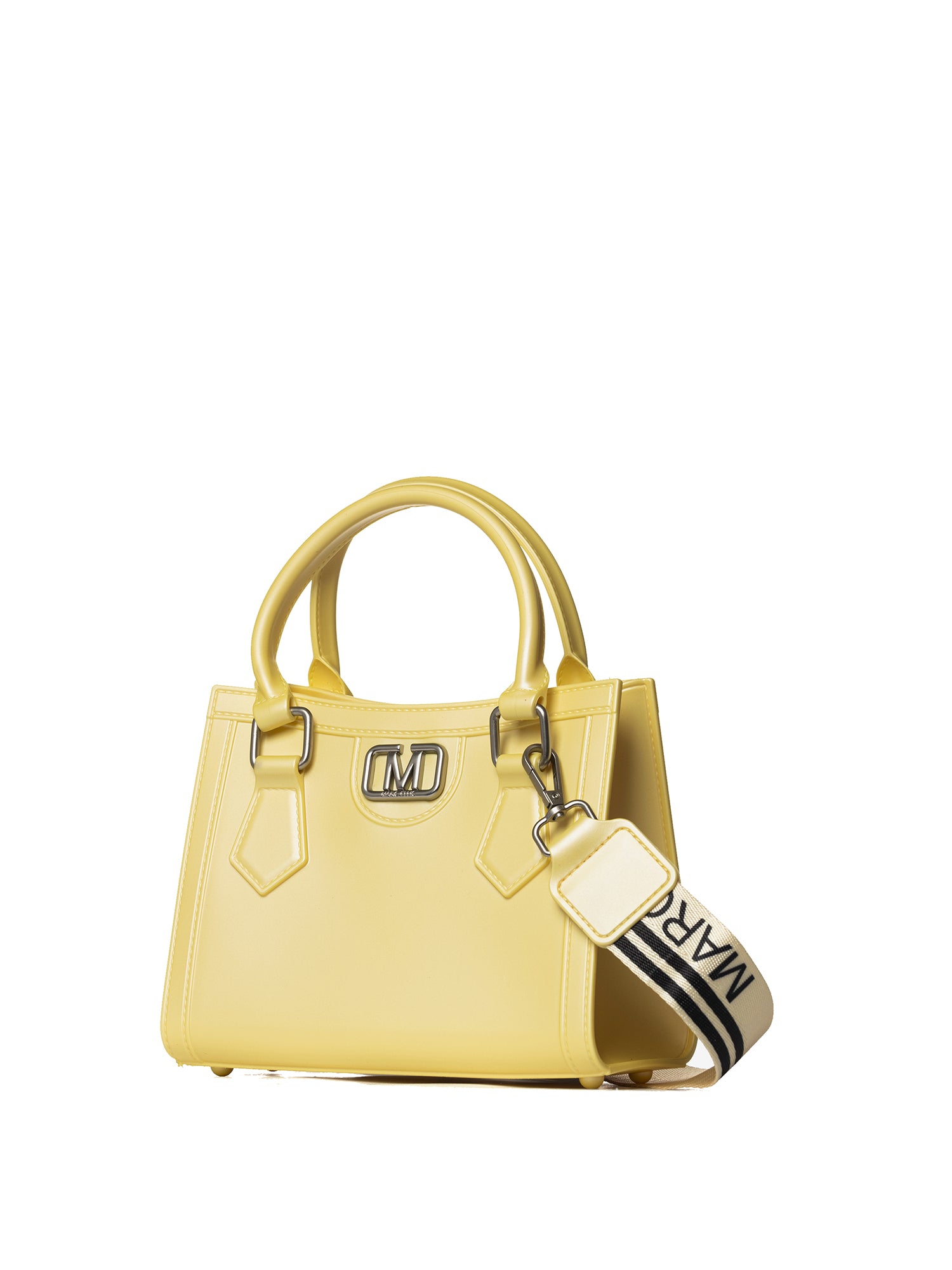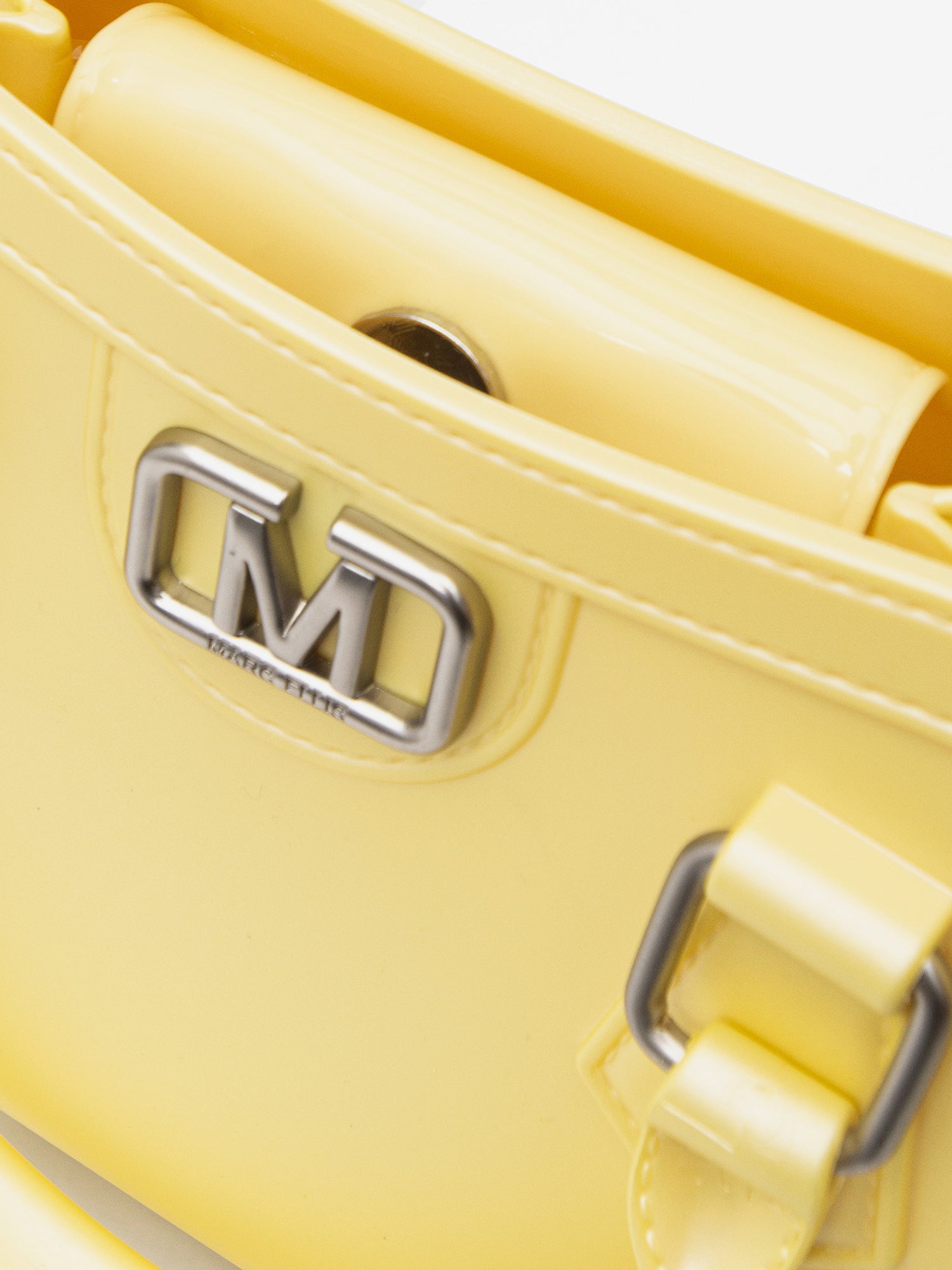 Realizzata interamente in gomma di alta qualità, sia all'interno che all'esterno, questa borsa offre una resistenza e una flessibilità uniche, garantendo una durata nel tempo eccezionale. L'artigianalità è al centro di questa creazione fashion, che si distingue per la sua forma strutturata e i dettagli curati.
