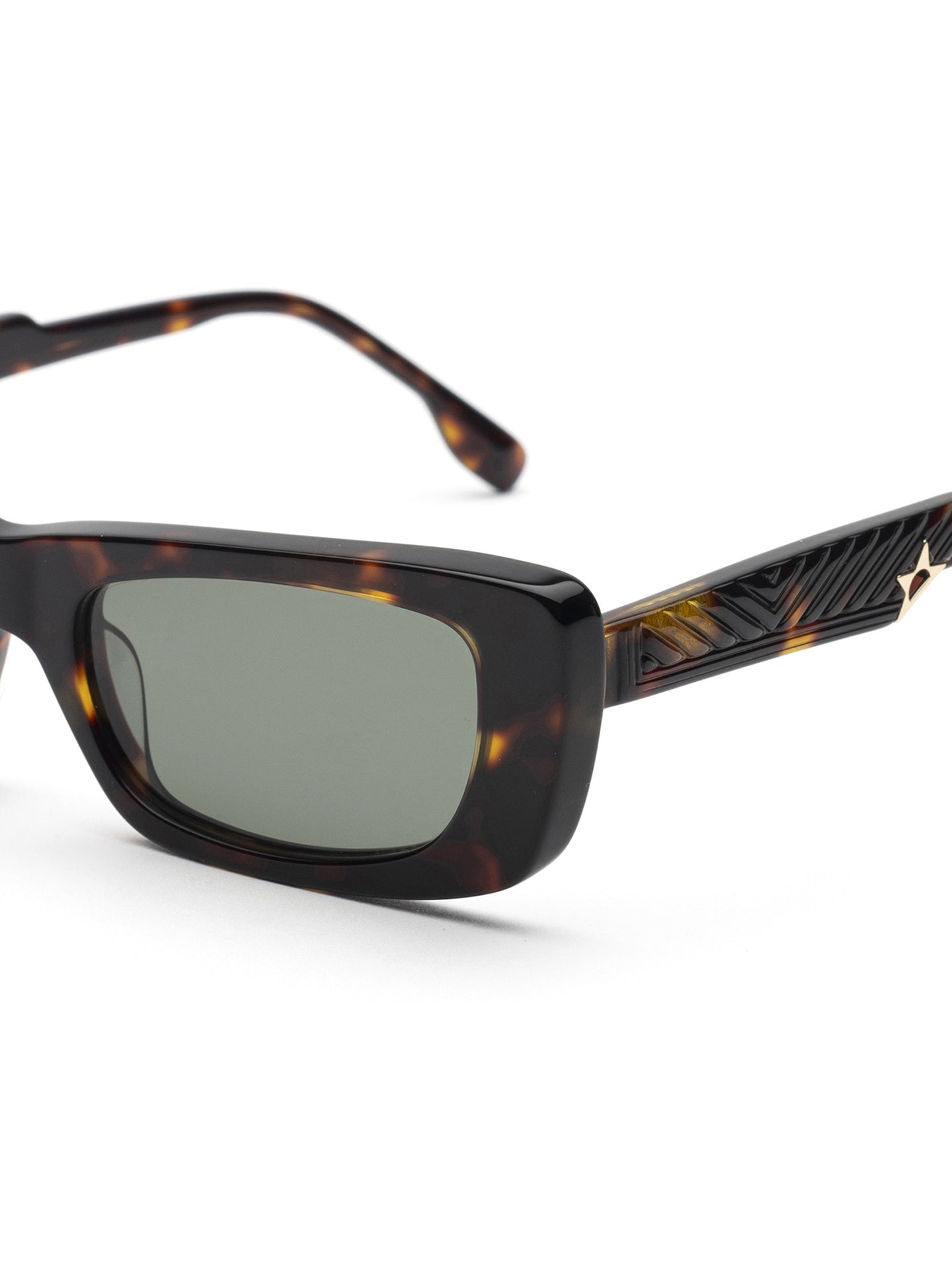 Eleganza retrò e fascino contemporaneo si fondono in questi occhiali da sole dal design inconfondibile. Realizzati artigianalmente in pregiato acetato di cellulosa, offrono un comfort leggero e una durata eccezionale. La montatura, caratterizzata da una forma geometrica e sofisticata, incornicia il viso con un tocco di stile senza tempo.