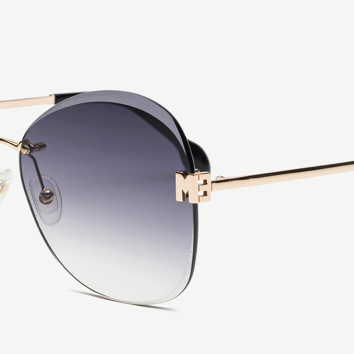 La montatura, dal profilo elegante e deciso, incornicia il viso con un tocco sofisticato, mentre le lenti con protezione UV garantiscono una visione nitida e sicura.