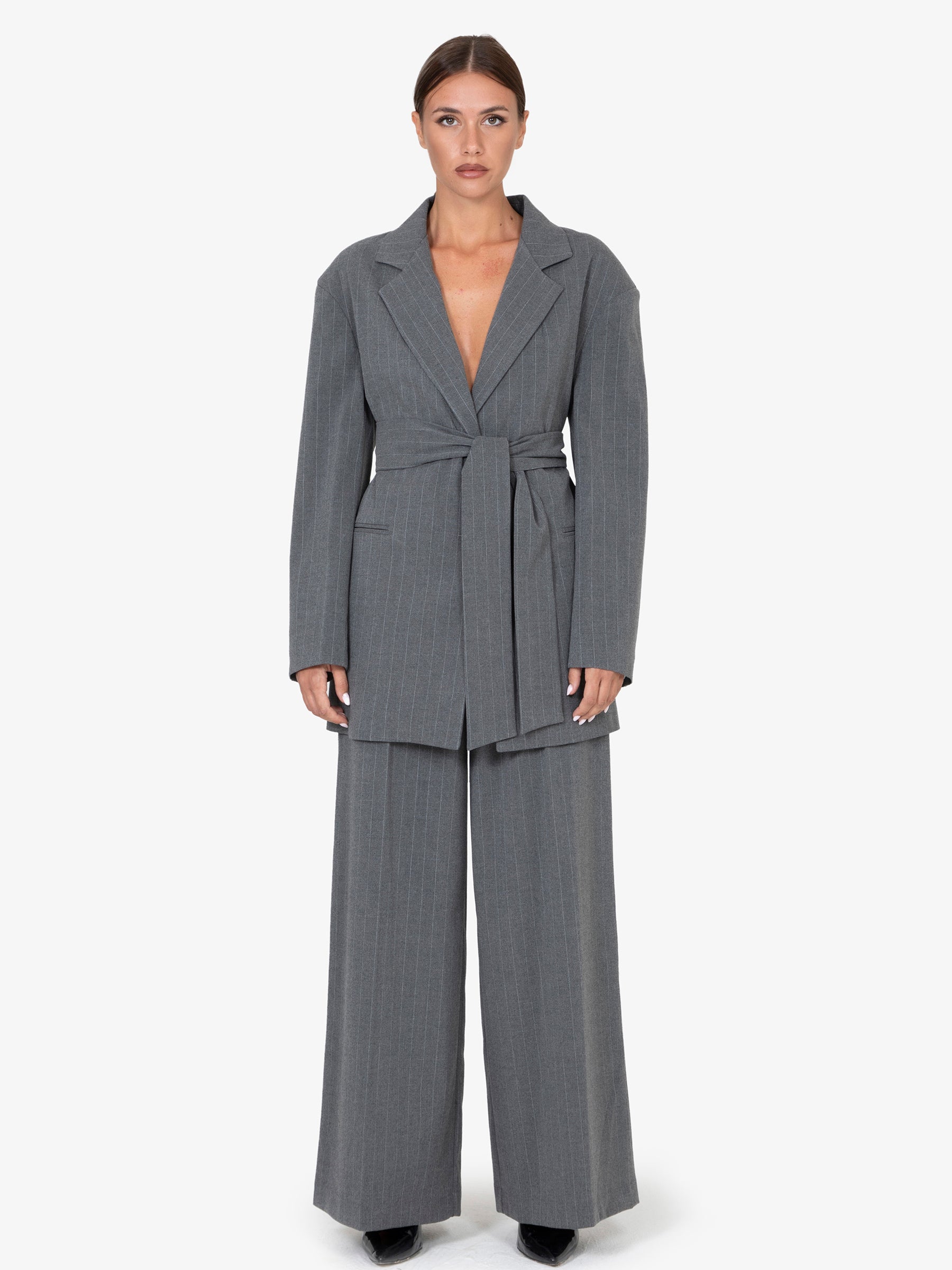 Eleganza senza tempo e comfort moderno si fondono in questi pantaloni ampi, un capo versatile progettato per la donna che desidera un look sofisticato e rilassato. Realizzati con un mix di poliestere, viscosa ed elastan, offrono una vestibilità confortevole e una drappeggiatura fluida che valorizza la silhouette.