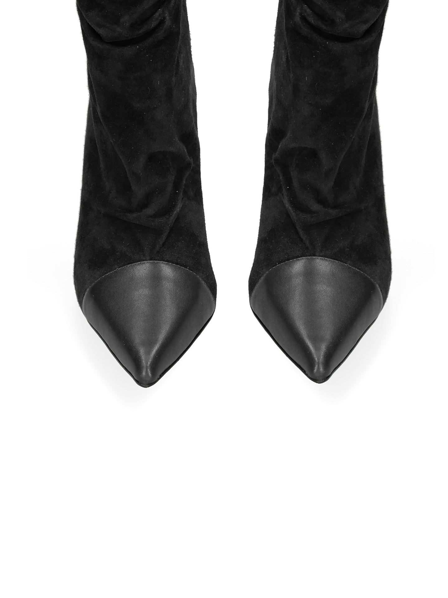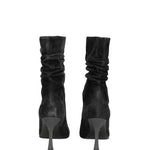 Il design, caratterizzato dalla silhouette slanciata e dalla punta affilata, si distingue per la sua versatilità, adattandosi con disinvoltura a look casual e outfit più ricercati. L'assenza di chiusura, unita alla particolare lavorazione del gambale, conferisce un tocco moderno e sofisticato, esaltando la forma della caviglia.