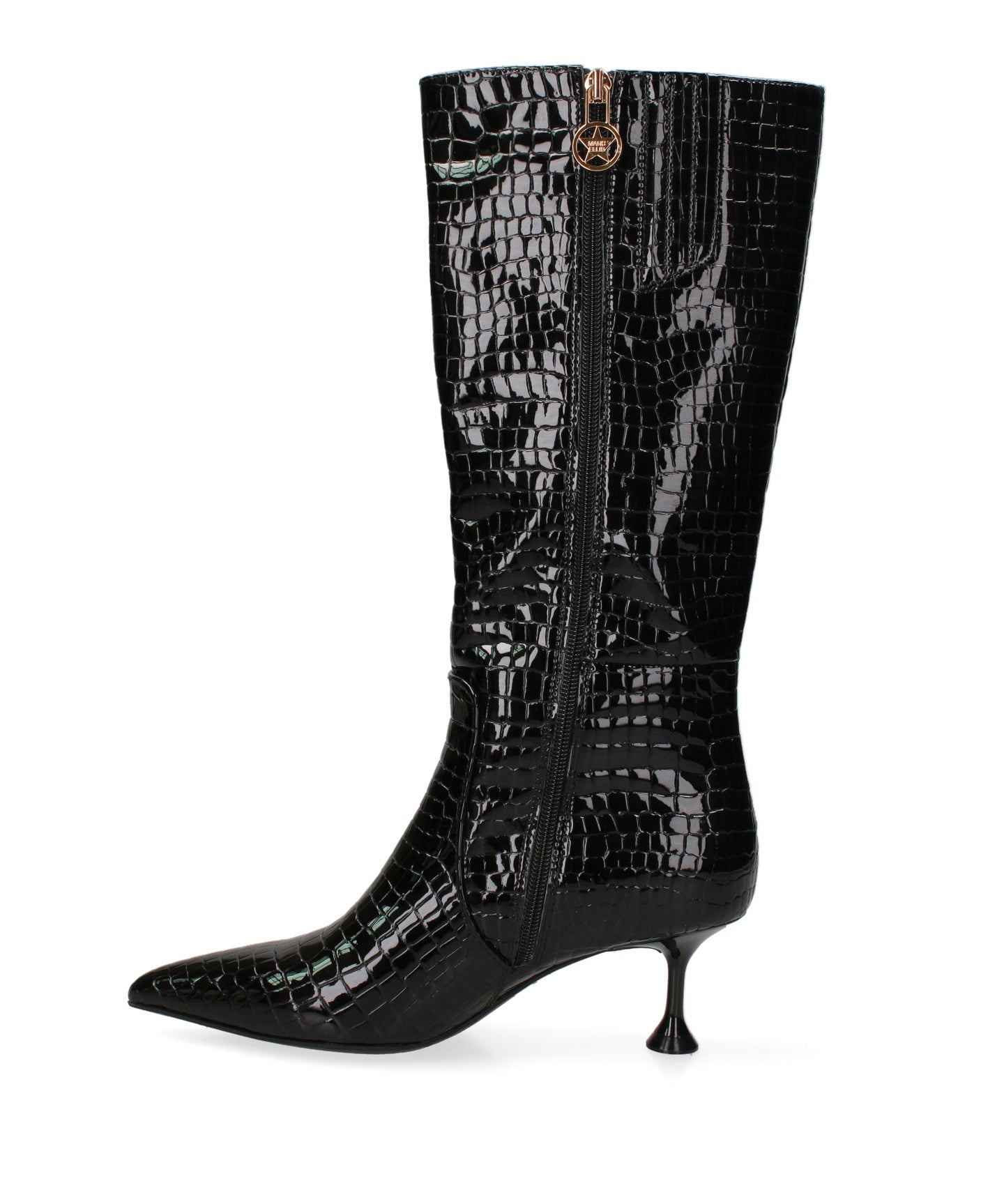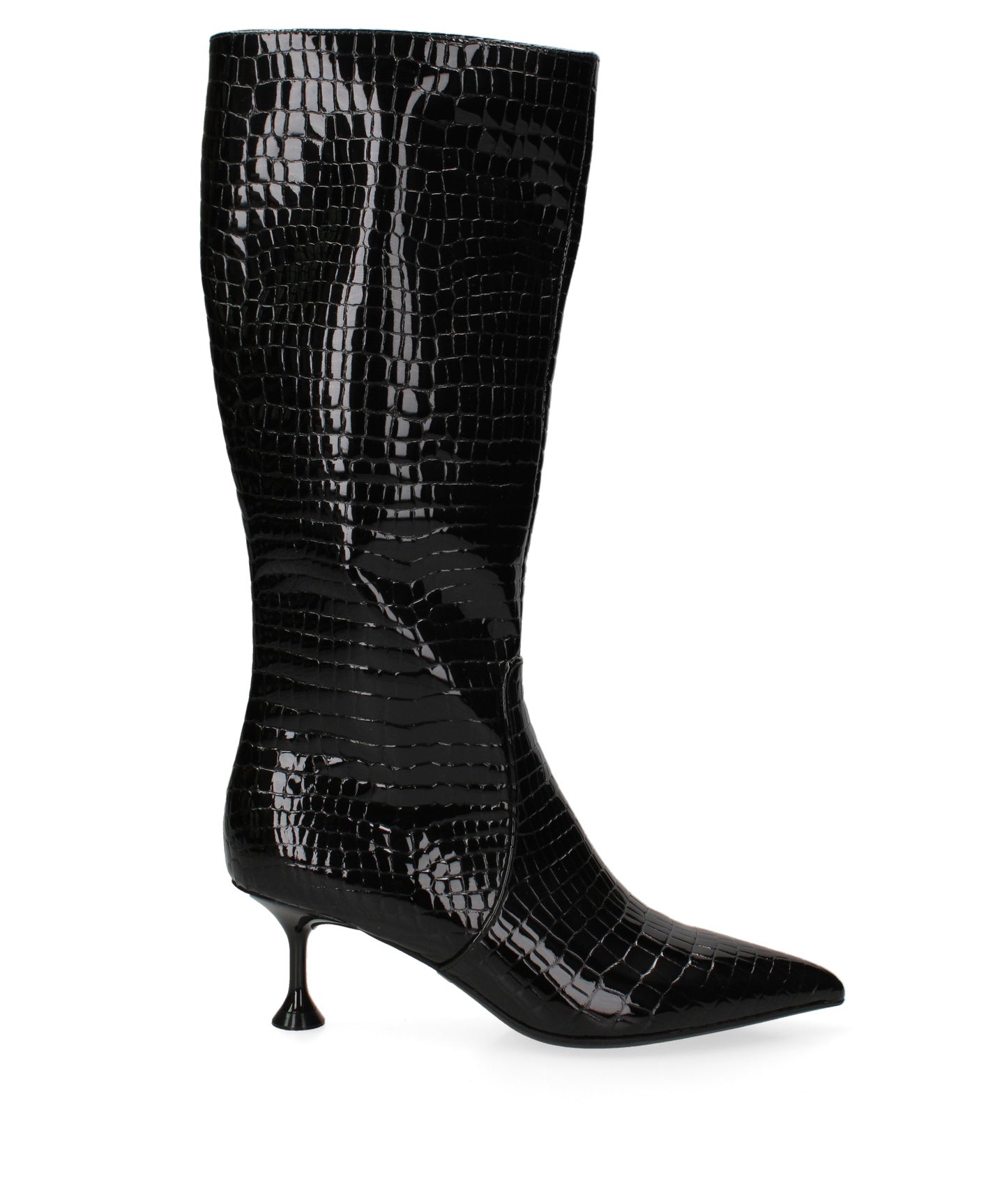 Slancia la figura con una linea pulita e avvolgente. Tomaie morbide e gambale strutturato per un fit stabile; perfetto con abiti midi o denim, dal giorno alla sera.