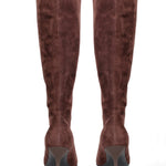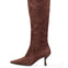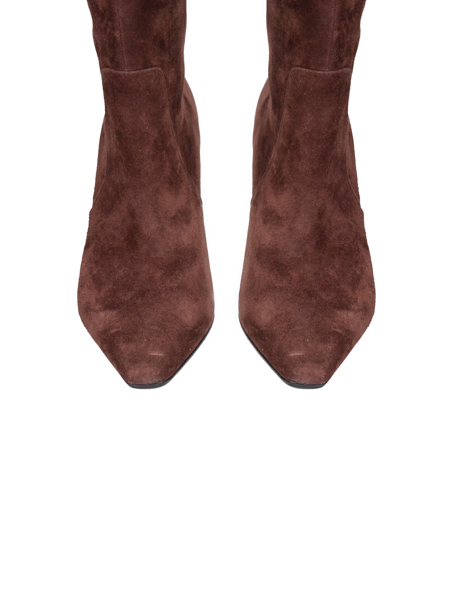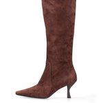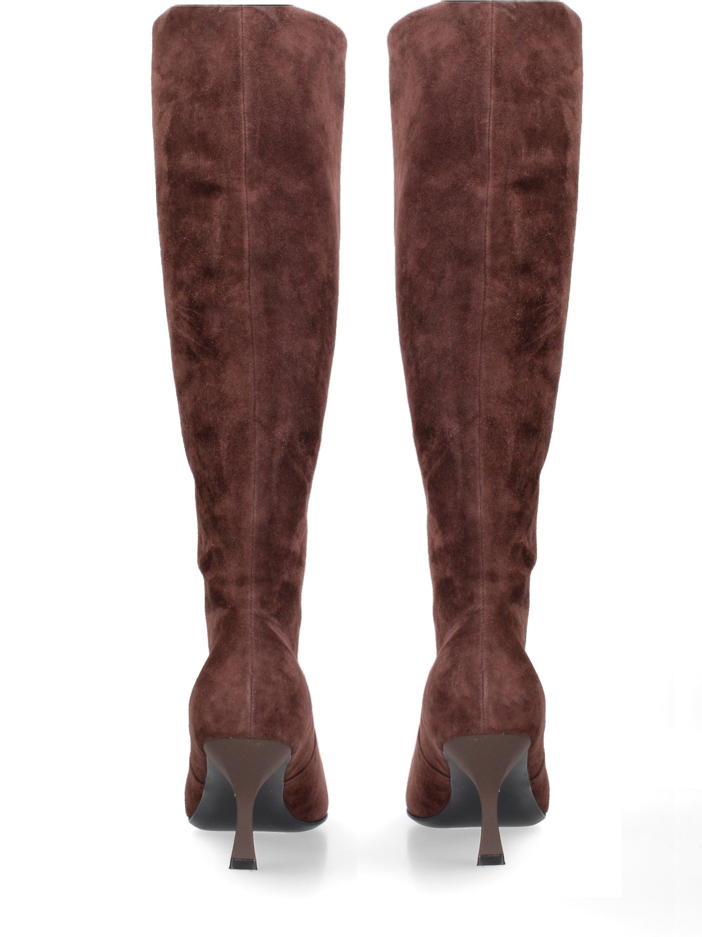 Eleva il tuo stile con questi stivali alti dal design sofisticato e senza tempo. Realizzati in pregiata vera pelle, questi stivali incarnano l'eleganza artigianale e la qualità superiore. La silhouette slanciata e la punta affusolata donano un tocco di raffinatezza ad ogni outfit, mentre l'assenza di chiusura ne facilita la calzata e sottolinea la linea pulita.