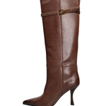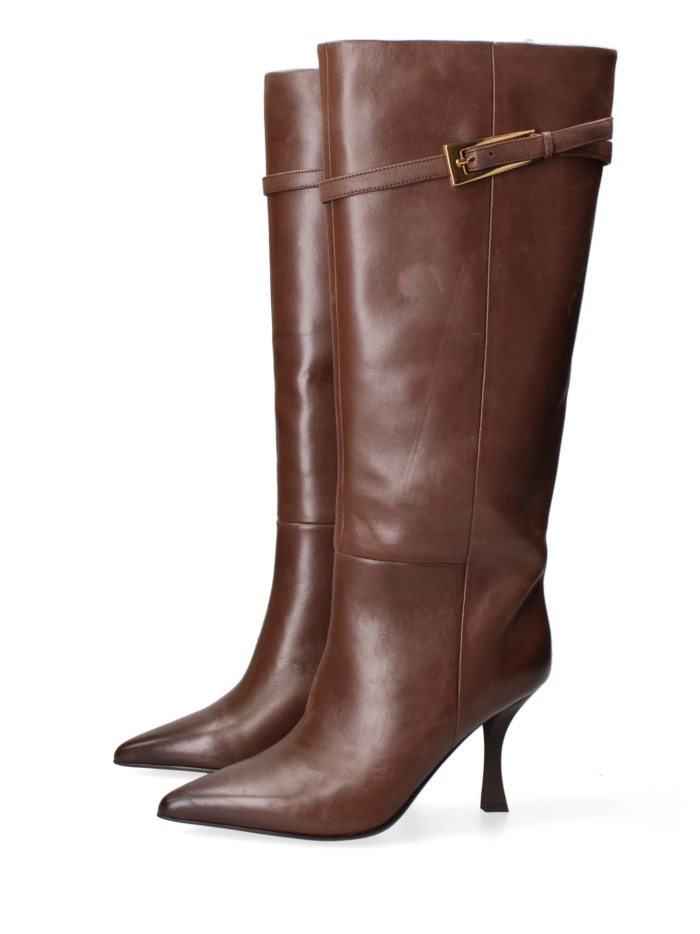 Eleva il tuo stile con questi stivali alti, un'espressione di eleganza senza tempo e audace femminilità. Realizzati interamente in vera pelle di alta qualità, questi stivali incarnano l'artigianalità e la cura per i dettagli.