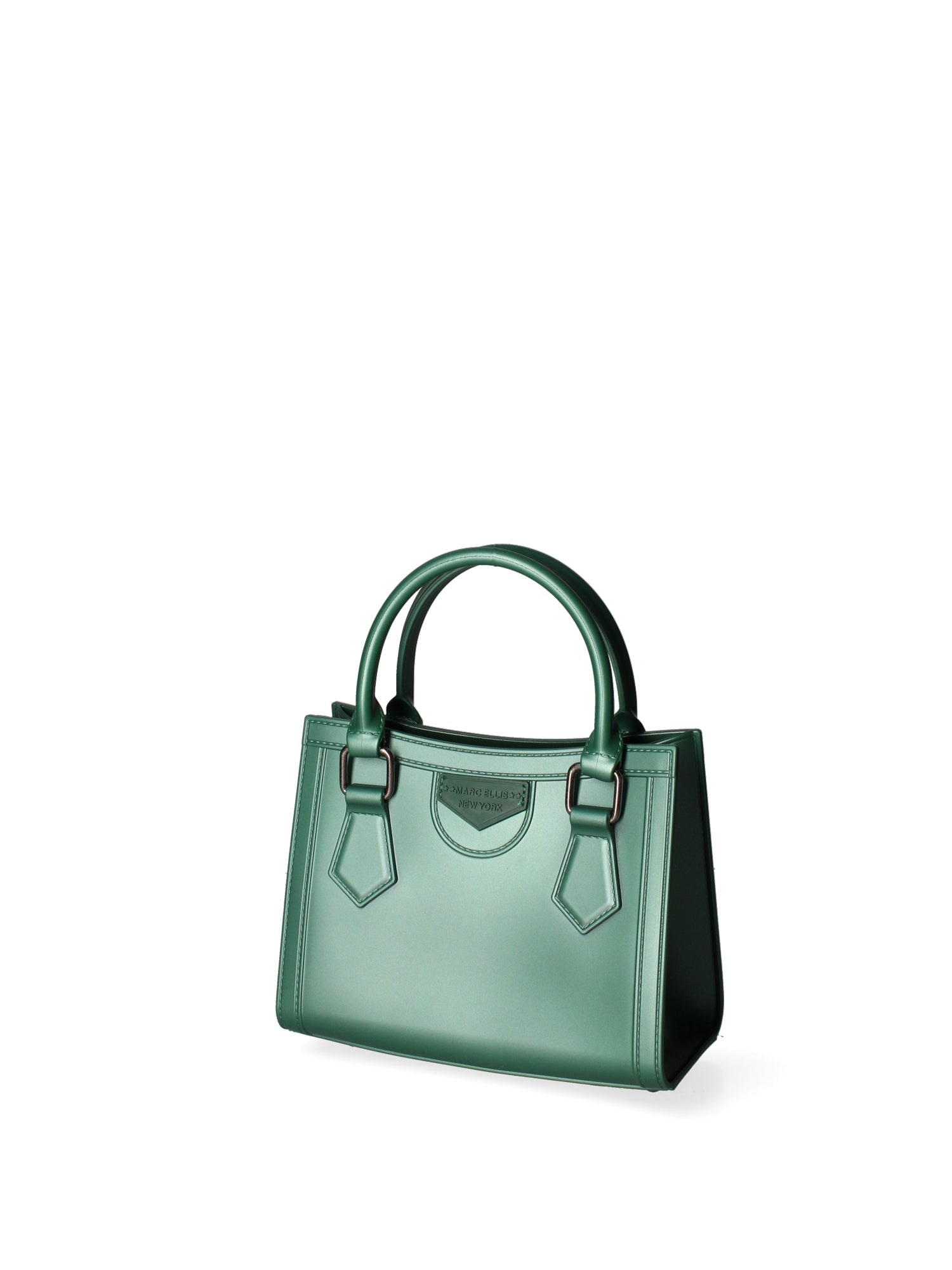 Borsa a mano da donna. La chiusura è con bottone a pressione. Le tasche interne sono assenti. Le tasche esterne sono assenti. La tracolla è regolabile e rimovibile in tessuto. Il manico è in pvc.
