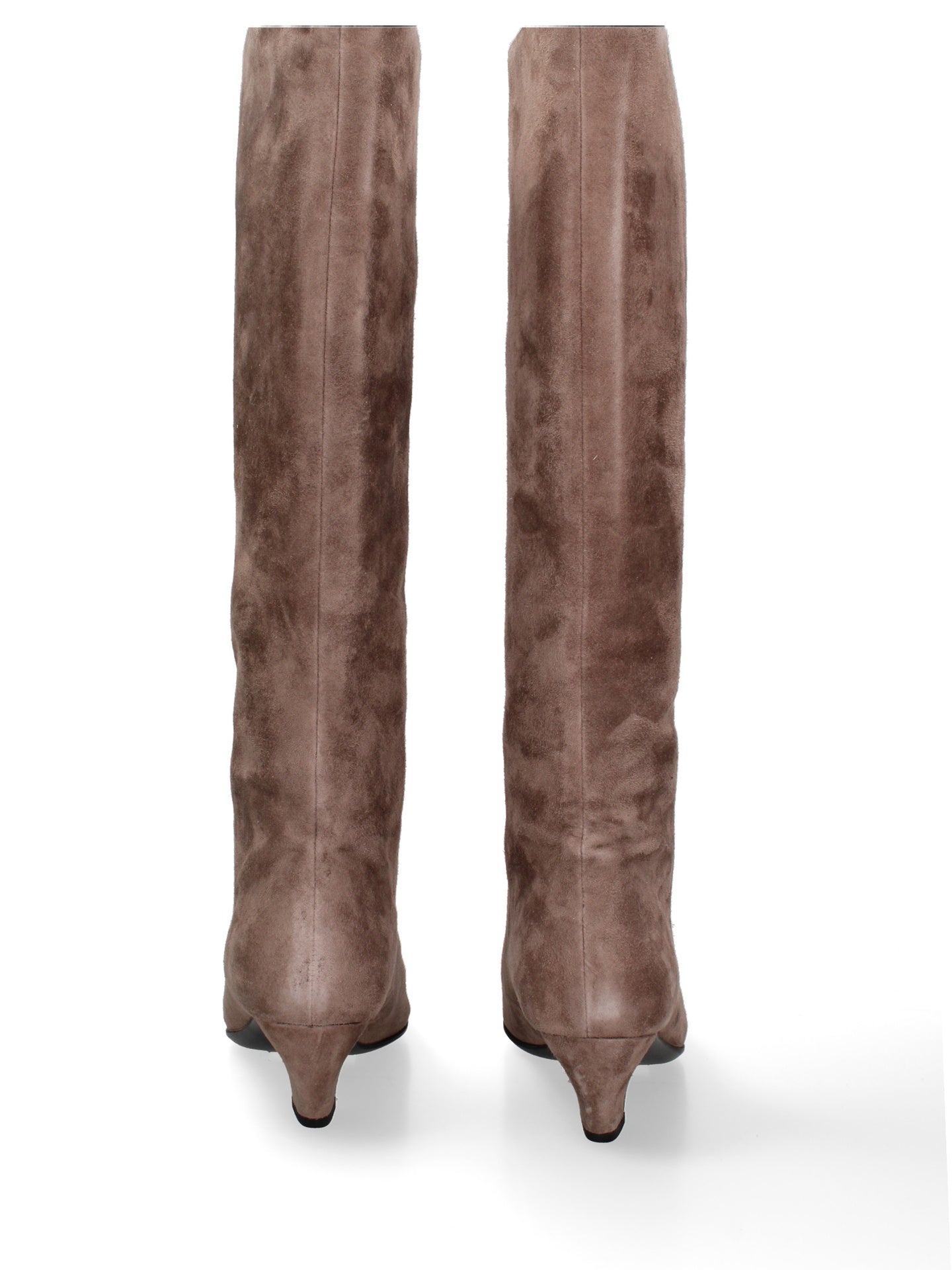 Il design senza chiusura esalta la linea pulita e slanciata, mentre la forma affusolata del tacco aggiunge un tocco di femminilità e sicurezza. Perfetti per completare outfit casual ma con un tocco di carattere, questi stivali sono un investimento nel tuo stile personale.